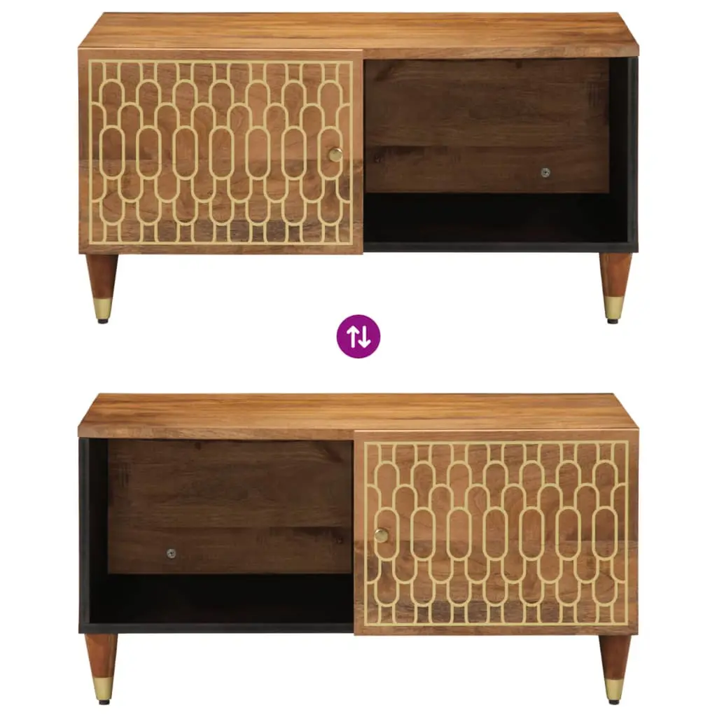 This coffee table is sophistication and practicality rolled into one, crafted from solid mango wood with a stunning honey brown finish that fits right into any living room vibe. Its rectangular shape, combined with a smooth surface and unique hand-carved design, makes for a welcoming centerpiece perfect for everything from relaxed family get-togethers to more elegant evenings. Lovely Design: The stunning hand-carved pattern on the surface adds character and makes each piece unique, enhancing your living space with a touch of charm.Plenty of Storage: Features a spacious shelf behind the solid wood door and a smooth top, perfect for stashing away magazines and knickknacks, keeping your area tidy.Built to Last: Made from solid mango wood, this coffee table is strong and stable, guaranteed to withstand everyday use while maintaining its appeal.Trendy Vibe: The mix of wood and iron elements brings that urban loft style, giving you a rustic yet chic look for various home styles.Easy Care: Just wipe it down with a damp cloth to keep it clean; regular dusting helps keep that gorgeous finish intact.