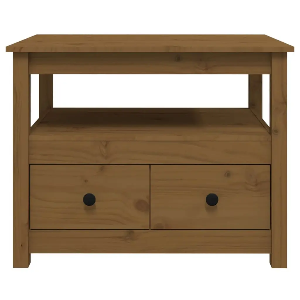 This Rustic Solid Wood Coffee Table is a great addition to any living room, blending practicality with classic style. Made from solid pine wood and finished in a delightful honey brown, it adds warmth and charm, making it perfect for gatherings or cozy nights with a good book. Ample Storage: The coffee table has two spacious drawers for stashing away magazines, coasters, and other items, helping you keep your space tidy while keeping essentials close by.Solid Build: Made from solid pine wood, this table is strong and built to last, looking great even after daily use.Nice Finish: The honey brown varnished finish showcases the natural wood grain, adding a touch of sophistication to your decor.Stylish Design: With its rustic charm, this coffee table fits seamlessly with all kinds of interior styles, making it a fantastic addition to your home.Perfect Dimensions: At 28.0 in long, 19.3 in wide, and 21.7 in tall, it fits well in various room setups, whether in front of your sofa or as a display surface.