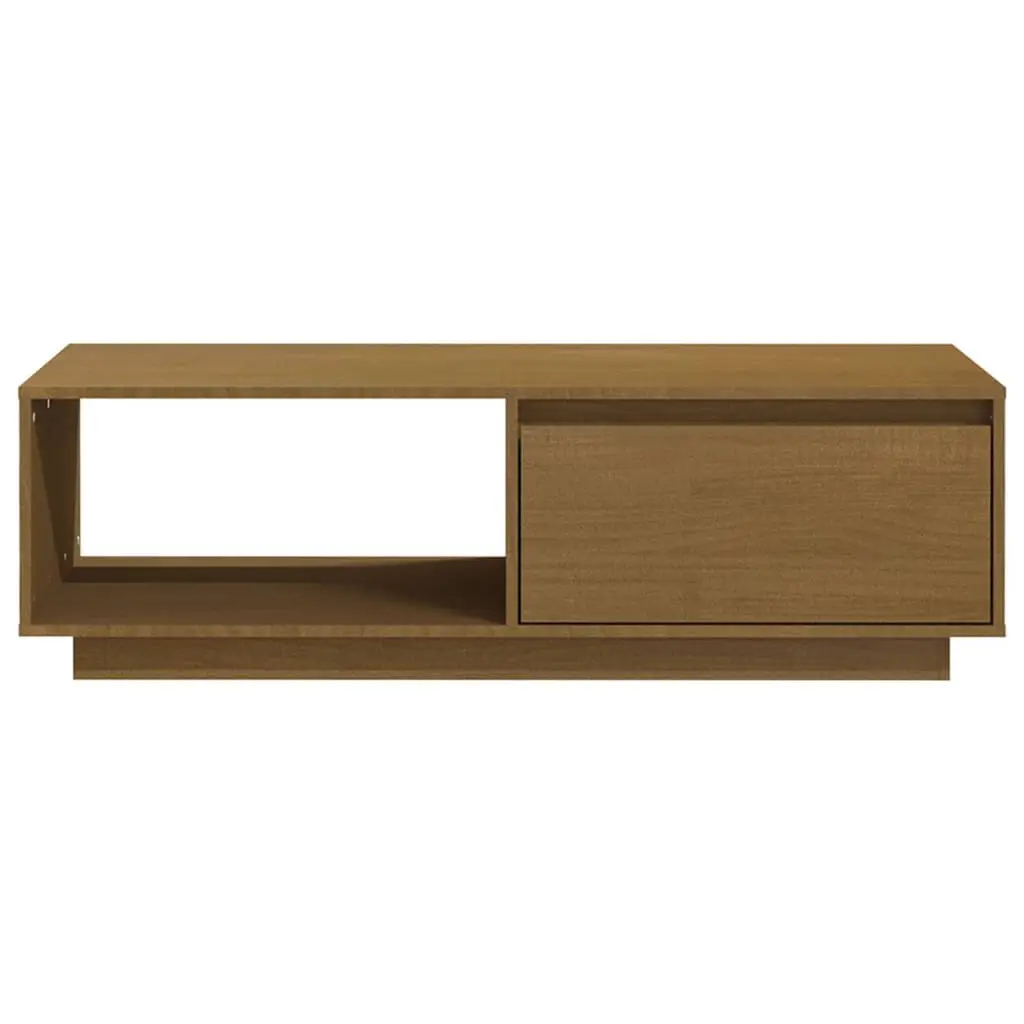 This coffee table is the perfect centerpiece for your living space, designed to support your daily needs in both style and function. Made from solid pine wood with a lovely honey brown finish, it fits in with any interior décor while serving as a solid base for your drinks, books, and decorative items. This coffee table is made from solid pine wood, giving it durability and stability for your living room.The honey brown stain highlights the wood's natural grain, making each piece unique and attractive.At 43.3 in long and 19.7 in wide, it has plenty of surface area for coffee, magazines, or decorative pieces.The modern design balances simplicity and function, adding style to any decor, whether classic or contemporary.Maintaining it is easy: just wipe it down with a damp cloth to keep it looking great with little effort.