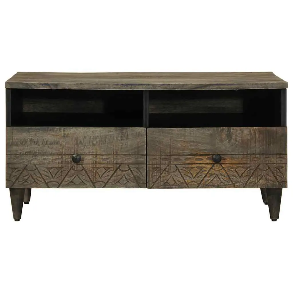 This coffee table, made from solid mango wood, is a stylish and modern addition to your living space. Its lovely light grey finish and smooth feel enhance any area, serving both decorative and practical needs, perfect for entertaining or storing decorative items. Ample Storage: The coffee table boasts a spacious top and built-in shelves for keeping books, magazines, and decor organized while keeping your place tidy.Elegant Design: Its modern style with clean lines and a light grey color fits into various interior themes, enhancing your living room's charm.Durable Material: Made from solid mango wood, known for its sturdiness and gorgeous grain, making it not just functional but also long-lasting.Versatile Use: Perfect for serving coffee or as a stylish side table, it fits various roles in the living room or upscaled spaces, acting as a gathering focal point.Easy Maintenance: The matte finish adds elegance and makes cleaning a breeze, helping you maintain its good looks without worrying about glossy surfaces.