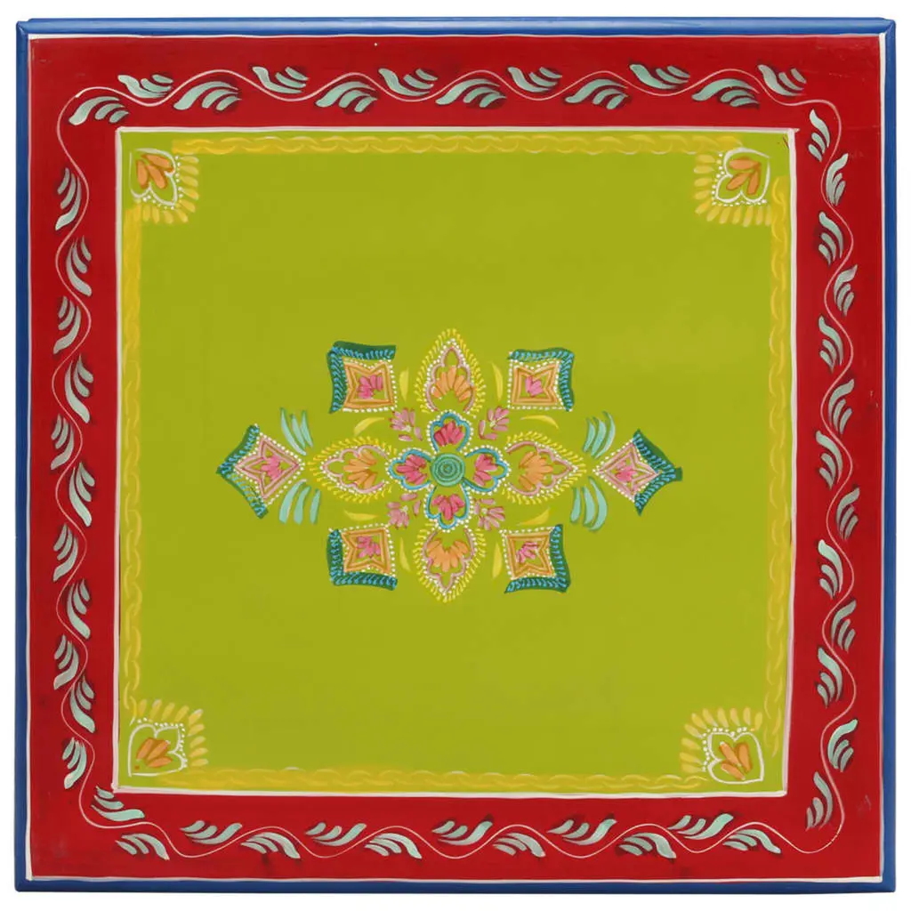 This hand-painted mango wood coffee table combines elegance and practicality, creating a captivating centerpiece for any living room. With its vibrant multicolored design and sturdy construction, it not only enhances your decor but also provides ample space for coffee cups and magazines. Artisanal Detail: The handmade design showcases intricate patterns, turning each table into a unique piece of art. This adds a personal touch to your home decor, making it a great conversation starter.Sturdy Craftsmanship: Made from solid mango wood, this table offers durability and stability. The natural hardwood construction guarantees a long lifespan, making it a smart investment for your living space.Versatile Use: Great for serving coffee, snacks, or decorating, this table fits a range of occasions and settings. Its elegant design goes well with any modern or traditional decor, enhancing your room's overall look.Size & Dimensions: The compact dimensions of 21.3 in x 21.3 in x 11.8 in work well in small to medium spaces, allowing it to blend into any room without overpowering your layout.Easy Care: Built for convenience, this table requires simple cleaning to keep it looking its best. Regular dusting with a soft cloth will maintain its shine.
