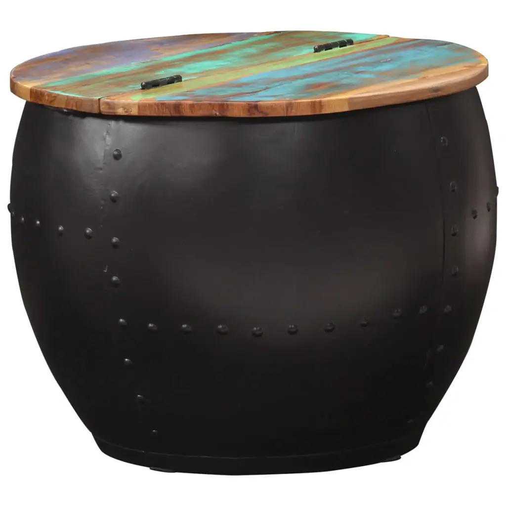 This coffee table is a beautifully crafted piece that combines functionality and style, perfect for your living room decor. Its round shape and solid reclaimed wood surface create a warm and welcoming vibe, ideal for hosting guests or enjoying a relaxed night in. Handmade Design: This coffee table is completely handmade, ensuring that every single piece is unique, boasting its own charm and character. This artisan touch enhances the quality of craftsmanship in your home.Ample Storage: The coffee table’s clever design provides generous storage beneath its surface, perfect for hiding away magazines, remotes, and other essentials while keeping your space tidy.Durable Build: Made from solid reclaimed wood, this table reflects a commitment to sustainability while promising exceptional durability, so you can enjoy its beauty for years.Stylish Vintage Look: With its retro vibe, this coffee table beautifully enhances your living space, providing a touch of elegance. The smooth surface and vibrant colors will complement various decor styles.Multi-Purpose Use: Great for serving coffee, it can also work as an end table or side table in your living room, offering versatility in its use while keeping a stylish appearance.