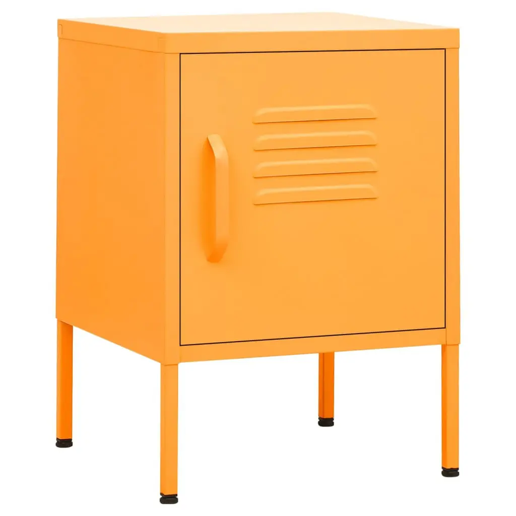 This coffee table, done up in a bold mustard yellow finish, adds a splash of color and a modern vibe to any living room or bedroom. It's made from tough cold-rolled steel and has a sleek rectangular shape that really shows off its industrial character. Perfect as the centerpiece for laid-back hangs with friends or as a stylish accent in your personal space. This coffee table is a practical and stylish addition to your living space. Its powder-coated metal surface gives a smooth and modern feel while maintaining durability for daily use. The ample storage from the two doors keeps your space organized, hiding books, magazines, or remotes for a tidy look. With adjustable feet, it’s made to stay stable on any flooring, so you can enjoy your coffee without wobbling. The sleek surface looks great and is super easy to clean with minimal fuss. Measuring 26.8 in in length and 19.7 in in width, it fits snugly in smaller living areas, providing functionality without crowding the space.