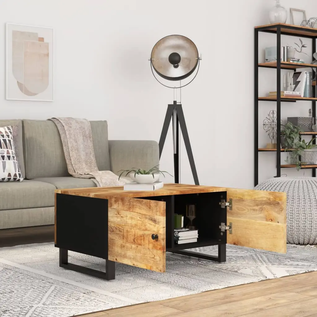This rustic solid mango wood coffee table is a stunning centerpiece for any living room, blending charm with practical functionality. The unique wood grain and smooth finish create a warm and inviting feel, making it a must-have that goes well with various home styles, from traditional to contemporary. Ample Storage: With two hinge doors, this coffee table has loads of space for storing books, magazines, or remote controls, keeping your living room organized and clutter-free.Durable Build: Made from solid mango wood and engineered wood, this table is built to last while keeping its lovely surface, ensuring you enjoy it for ages.Natural Aesthetic: The rustic finish of the solid mango wood enhances its natural beauty, adding a bit of rustic elegance to any room.Sleek Finish: The matte finish is not just good-looking; it also helps hide fingerprints and stains, making it easy to maintain.Versatile Use: Great for coffee, or as an end table, it fits perfectly next to your sofa or chair, giving you space for drinks, snacks, or decorative bits while enhancing your living areas.