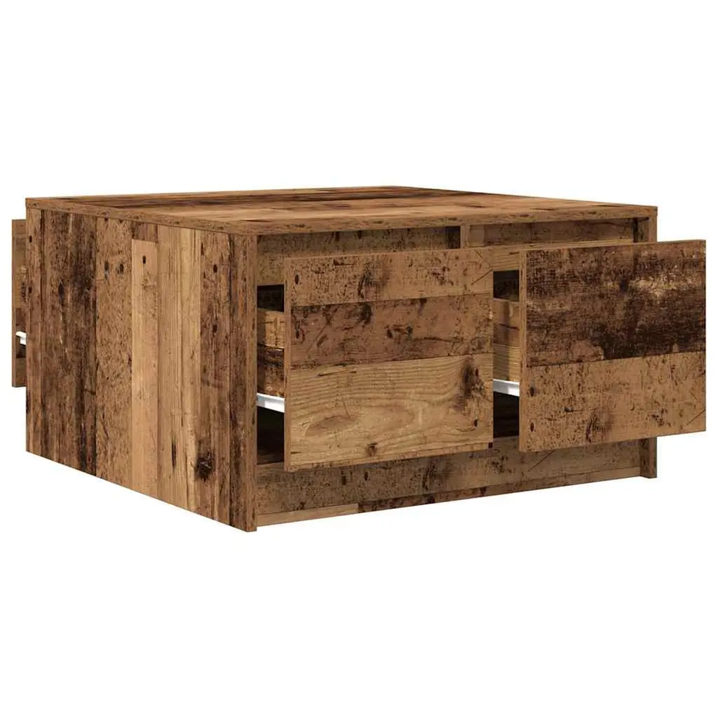This Modern Square Coffee Table is an awesome piece that mixes form and function, made to fit various living spaces. Crafted from engineered wood, it has a smooth feel and a warm brown color that fits with both modern and traditional styles. Ample Storage: This coffee table has four spacious drawers for all your essentials, like remote controls, magazines, and even decorative bits, keeping your living area neat and tidy.Durable Design: Made from quality engineered wood, this table is built to last, providing a sturdy surface for your accessories, snacks, or drinks without losing its grip.Elegant Aesthetic: The old wood finish adds a touch of class and blends effortlessly with many color schemes, making it a versatile piece for any room.Versatile Functionality: This coffee table isn’t just for drinks; it’s a great spot for displaying art, books, or family photos, adding character to your space.Compact Dimensions: Its medium size, measuring 27.8 in by 27.6 in, is perfect for smaller apartments while still being practical for your needs.