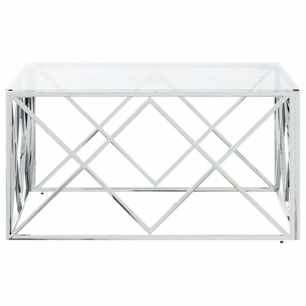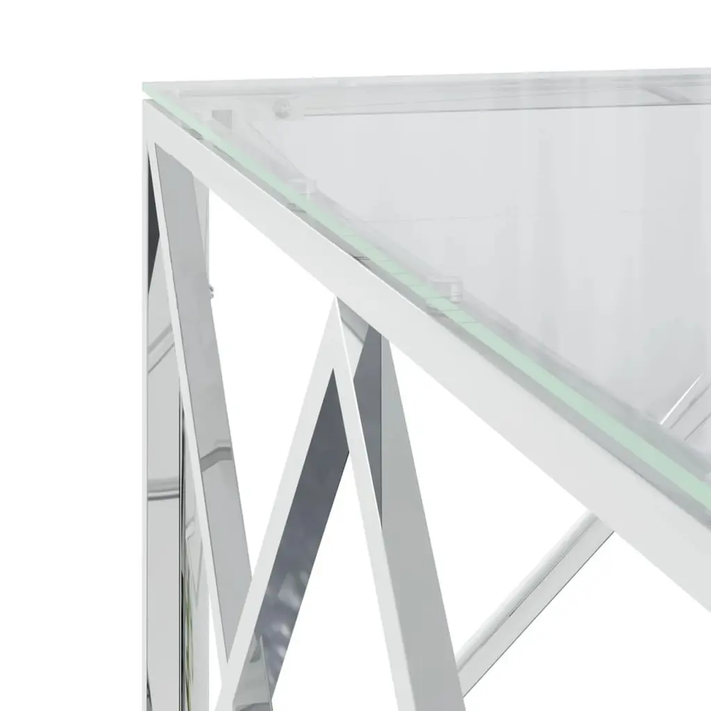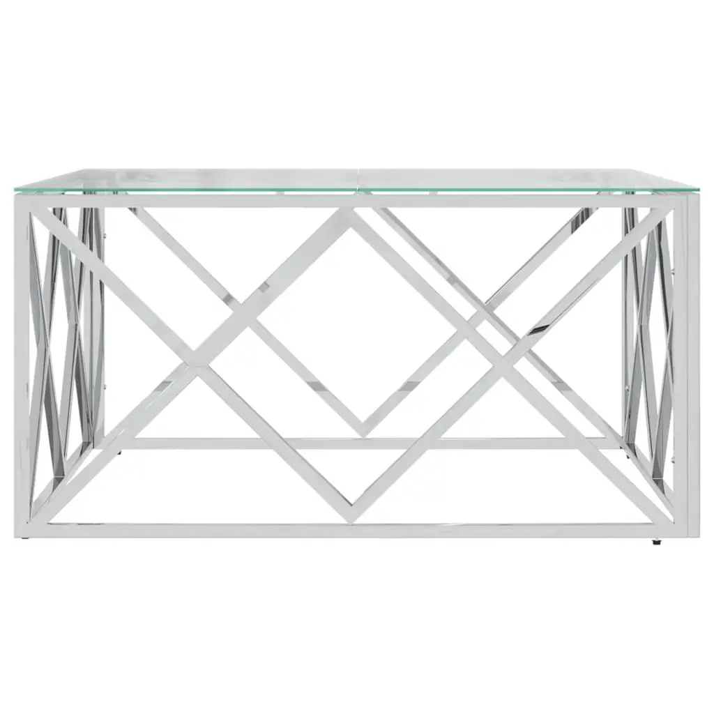 This modern coffee table is a fab centerpiece for any living room, effortlessly blending style and function. With its sleek stainless steel frame and clear tempered glass top, it gives off a bright and airy feel, making it a smart addition to your decor while giving you plenty of space for drinks and decor. Stainless Steel Frame: The solid stainless steel construction ensures longevity and provides a reliable base for daily use. This material resists rust and is easy to maintain, keeping your coffee table looking fab for years.Tempered Glass Surface: The clear glass top not only looks great but also offers a smooth and sturdy surface, making it perfect for hot drinks and decorative displays without a fuss.Indoor Usage: This table is made for indoor spaces, adding elegance to your living room for both laid-back family gatherings and smart entertaining.Spacious Dimensions: Measuring 31.5 in by 31.5 in and standing at 15.7 in high, it's just right for snacks, magazines, or cocktails—a versatile addition to your living area.Modern Aesthetic: With a sleek, polished finish, this coffee table matches modern decor styles, adding a touch of sophistication and minimalism to your home.
