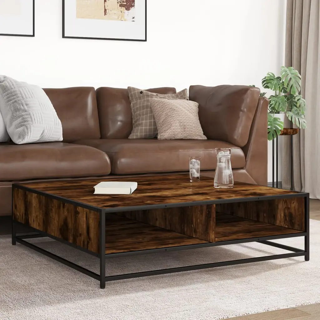 This coffee table brings together function and modern flair, making it a fab addition to your living room or hallway. Its sleek square shape and strong lines create a stylish focal point that not only enhances the room’s vibe but also offers handy storage for everyday bits and bobs. Ample Storage: This coffee table features a generous storage capacity, conveniently hiding away books, magazines, or remote controls, transforming clutter into a minimalist aesthetic that promotes tranquility in your space.Modern Industrial Design: The table showcases a striking industrial style with its smoked oak finish and matte black legs, providing a raw yet sophisticated vibe that enriches any contemporary living area.Durable Construction: Crafted from engineered wood and metal, this table is built to last, resisting wear and tear, and ensuring you can enjoy its beauty and utility for years to come.Versatile Use: Perfect as a coffee table, accent table, or end table, it adapts effortlessly to diverse settings, whether serving coffee to guests or showcasing decorative pieces.Smooth Texture: The surface has a sleek, smooth finish that is not only pleasing to the touch but easy to clean, making it a practical choice for busy households.