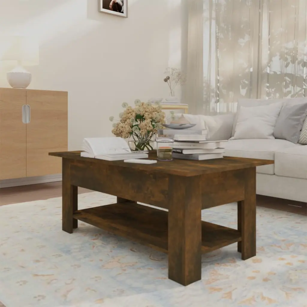 This rectangular coffee table features a cool smoked oak finish and a functional design, making it a great choice to boost your living room's style. Its large surface area and clever storage help show off decor while keeping essentials close, creating a handy focal point that fits right into your home. Ample Storage: The coffee table has a spacious shelf for stashing books, magazines, and decorative bits, helping keep your living space tidy while looking good. This handy storage solution helps you keep your living room organized yet stylish.Sleek Design: The chic smoked oak finish gives a refined touch to your furniture, with a smooth look that really stands out. This modern design fits in with various decor styles, making it a fantastic addition to any home.Durable Material: Made from tough engineered wood, this coffee table is built to last while looking good, making it a smart buy for anyone’s home. Engineered wood is not only long-lasting but also a breeze to clean with just a damp cloth.Versatile Use: Perfect for serving coffee, this table is ideal for cozy meet-ups or just enjoying a brew while relaxing at home. It enhances your living area by providing a useful and attractive spot for everyone.Generous Dimensions: At 40.2 in long, 21.7 in wide, and 16.5 in high, this coffee table is the perfect fit for most living rooms, giving you plenty of surface area without crowding the space.