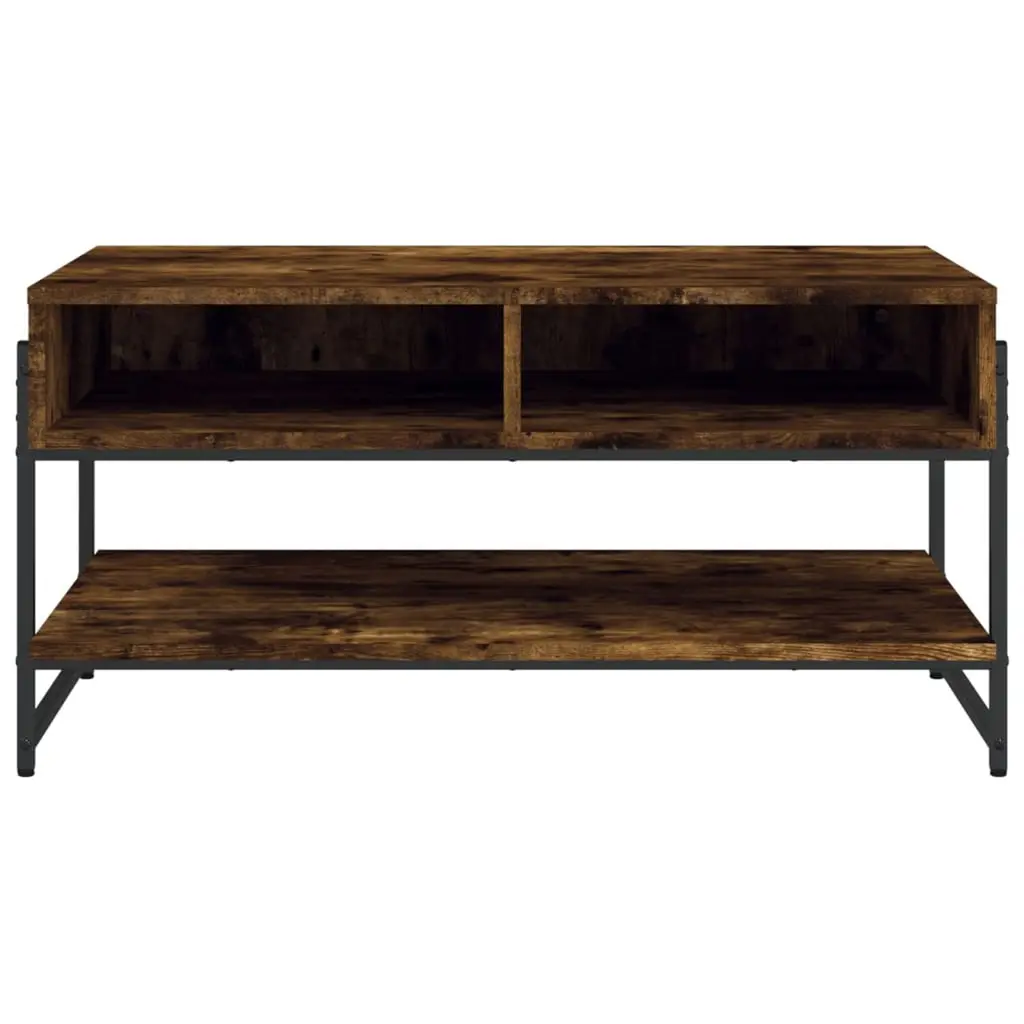 This coffee table is a gorgeous mix of style and practicality, a must-have for any living area. Made from engineered wood with a smoked oak finish, it features a modern industrial look that's stylish and super functional, perfect for drinks, magazines, or decorative items while boosting your home’s vibe. Height-Adjustable: Set the feet to balance uneven floors or tailor your table height to fit perfectly in your space.Ample Storage: With two shelves, there's loads of space for magazines, books, or remotes, keeping your living room sorted.Durable Finish: The powder-coated metal gives it a solid base that's resistant to wear and tear, making sure it lasts.Modern Industrial Design: The smoked oak finish gives it an industrial feel, easily fitting with contemporary decorations, making it a stylish centerpiece in any room.Easy Maintenance: The smooth surface makes cleaning a breeze; just wipe it down with a damp cloth to keep it looking pristine.