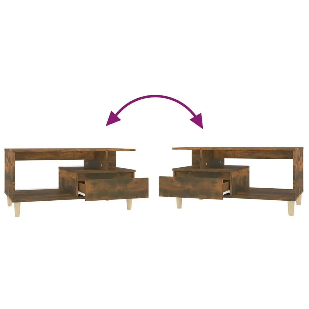 This coffee table, with its modern look, features a lovely smoked oak finish that blends perfectly with contemporary home styles. Its generous dimensions of 35.4 in long, 19.3 in wide, and 17.7 in high make it a fantastic centerpiece for any living room or lounge, just right for everything from get-togethers to quiet evenings. Versatile Use: Perfect for drinks or as a display surface; this table fits in any social setting.Spacious Hidden Storage: The solid drawers let you store things neatly, easily hiding away those magazines or remotes.Sturdy Design: Made from tough engineered wood and solid eucalyptus for lasting use.Stylish Appearance: The matte finish cuts down reflections, blending in smoothly with any style, from laid-back to fancy.Easy Maintenance: Just wipe it down to keep it looking sharp without needing harsh cleaners.