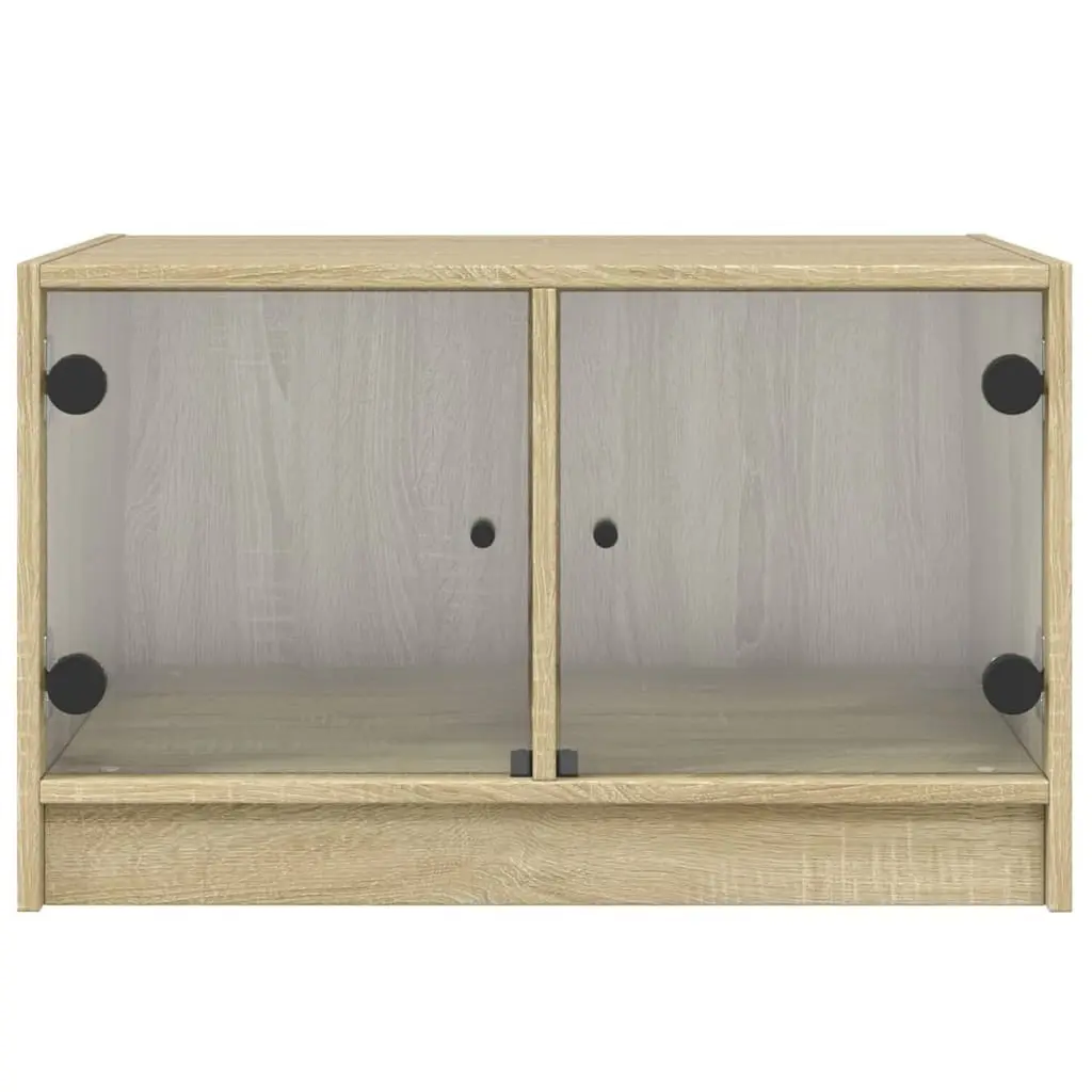 This coffee table is ready to elevate your living space with its sleek and modern look, featuring a smooth surface and fab Sonoma oak finish. It's perfect for serving coffee or displaying decorative pieces. This rectangular table is practical and also adds a stylish focal point to your room's decor, suitable for both relaxing and entertaining. Ample Storage: The coffee table has two sliding glass doors unveiling loads of interior space, perfect for storing magazines, books, and more — keeping your place clutter-free. It's a must-have for those wanting a blend of practicality and good design in their furniture.Stylish Design: With its matte finish, this coffee table adds a trendy feel to any space, capturing the essence of modern furniture while still being practical. Its smooth surface is inviting to touch, and simple lines create an uncluttered look.Transparent Doors: The chic glass doors not only provide easy access to your storage but also showcase your favorites, whether they're prized possessions or decorative pieces. This feature adds elegance and versatility.Durable Materials: Built from engineered wood and synthetic glass, this table is made to last, standing up to daily wear while looking great. The wood provides strength, and the glass adds a nice touch, making it a long-lasting addition to your home.Perfect Dimensions: At 26.8 x 19.7 x 16.5 in, this coffee table is compact enough for snug spots while giving you plenty of room to be useful, making it ideal for living rooms, workspaces, or hallways. Enjoy both charm and practicality in one stylish piece.