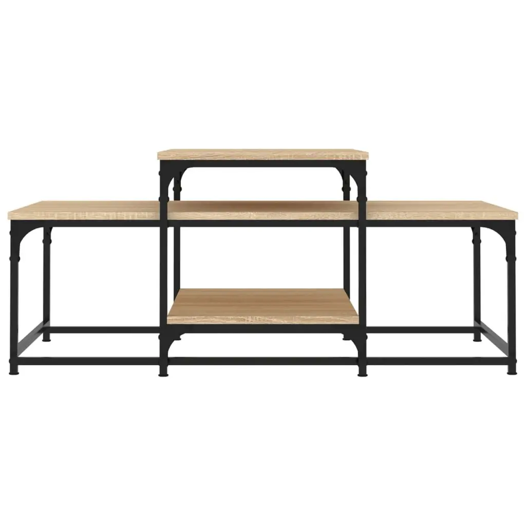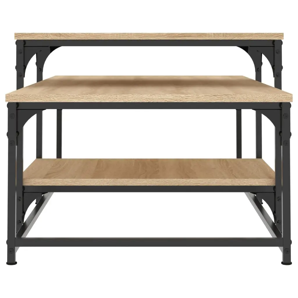 This coffee table made from engineered wood in a warm Sonoma oak finish brings a mix of modern style and practicality to your living space. The sleek rectangular design features a smooth surface and a floating shelf, giving you loads of space for serving coffee, displaying items, or showcasing your favorite books and magazines while complementing your decor. Spacious Surface Area: Measures 40.2 in by 23.6 in, this coffee table gives you ample space for drinks and decorations—essential for any gathering.Elegant Floating Shelf: The floating shelf adds a stylish bit of storage, keeping everything organized and easy to reach.Versatile Design: Works well in various settings, this table can boost living rooms, lounges, or offices with its stylish look and practical build.Sturdy Support: Four strong square legs ensure this table is stable while giving a modern touch with their matte grey finish.Easy Maintenance: The durable engineered wood provides a smooth surface that's easy to wipe clean—perfect for everyday use.