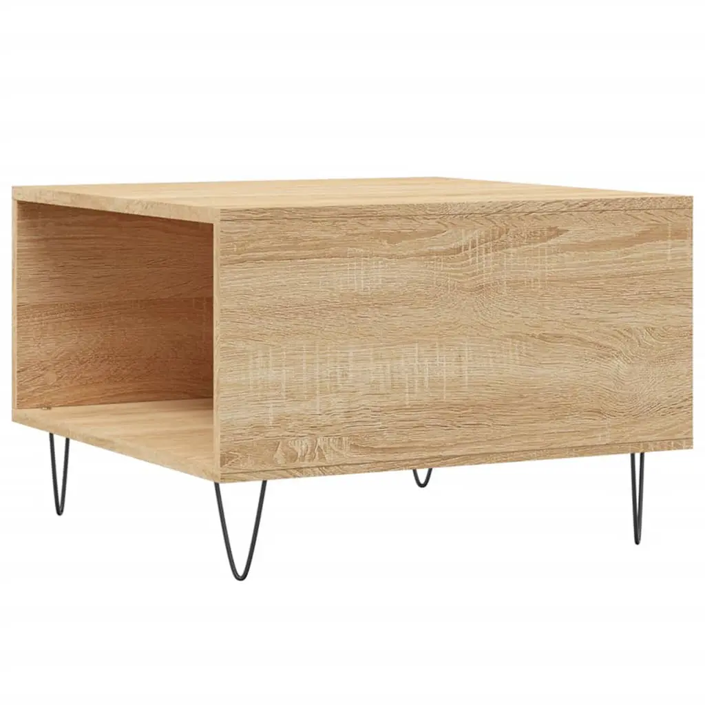 This Sonoma oak coffee table blends style and practicality, with its modern, compact design fitting perfectly in any living room or home office. Its square shape and smooth surface provide a practical space for drinks and decorations while adding a touch of elegance to your room, creating a cozy vibe for gatherings or quiet nights in. Modern Aesthetic: This coffee table has a sleek look that boosts the vibe of any room, with its lush Sonoma oak finish adding warmth and making it a showpiece in your living space.Ample Storage Space: With a handy drawer, it’s perfect for stashing away magazines, coasters, or remotes, keeping your space neat while giving you easy access to all your essentials.Sturdy Construction: Built from quality engineered wood and strong metal legs, this table is tough enough for daily use without losing its charm. The solid materials promise a long-lasting addition to your home.Compact Dimensions: Measuring 21.7 in x 21.7 in x 14.4 in, it’s just right for tighter spots, making it a fab choice for apartments or snug lounges while giving you plenty of surface for drinks and decor.Versatile Functionality: Whether serving coffee or acting as a side table, it's designed for all sorts of uses, adding practicality to your living room or office, whether you're hosting friends or having a quiet night in.