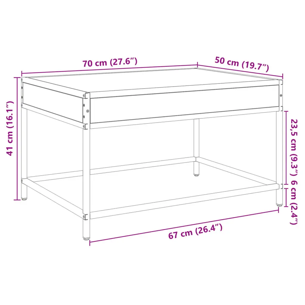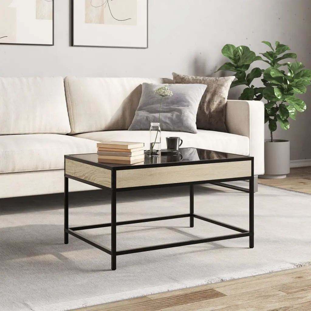 Vidaxl Coffee Table Sonoma Oak Engineered Wood, Glass 27.6 X 19.7 In