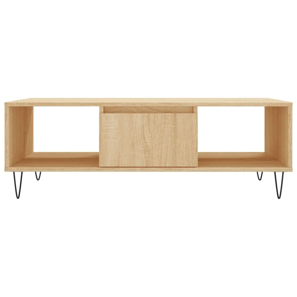 This Sonoma Oak Coffee Table is a practical centerpiece for your living room or office, mixing modern design with useful functionality. Its sleek, rectangular shape in warm oak tones creates a welcoming feel, perfect for coffee serving, reading, or showing off decorative bits, making it a great pick for those who value both style and practicality. This coffee table has plenty of storage, giving you loads of room for books, magazines, and decor while keeping your space neat.The trendy design suits any interior, blending easily with both modern and traditional styles.You can tell it’s well-made; the use of engineered wood and sturdy iron legs means it’s beautiful and stable for years to come.It’s easy to maintain, just wipe the smooth surfaces down with a damp cloth.Measuring 40.9 in long and 23.6 in wide makes it just right for different settings without taking over the space.