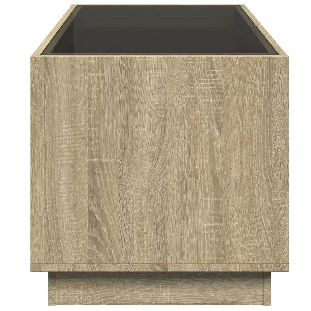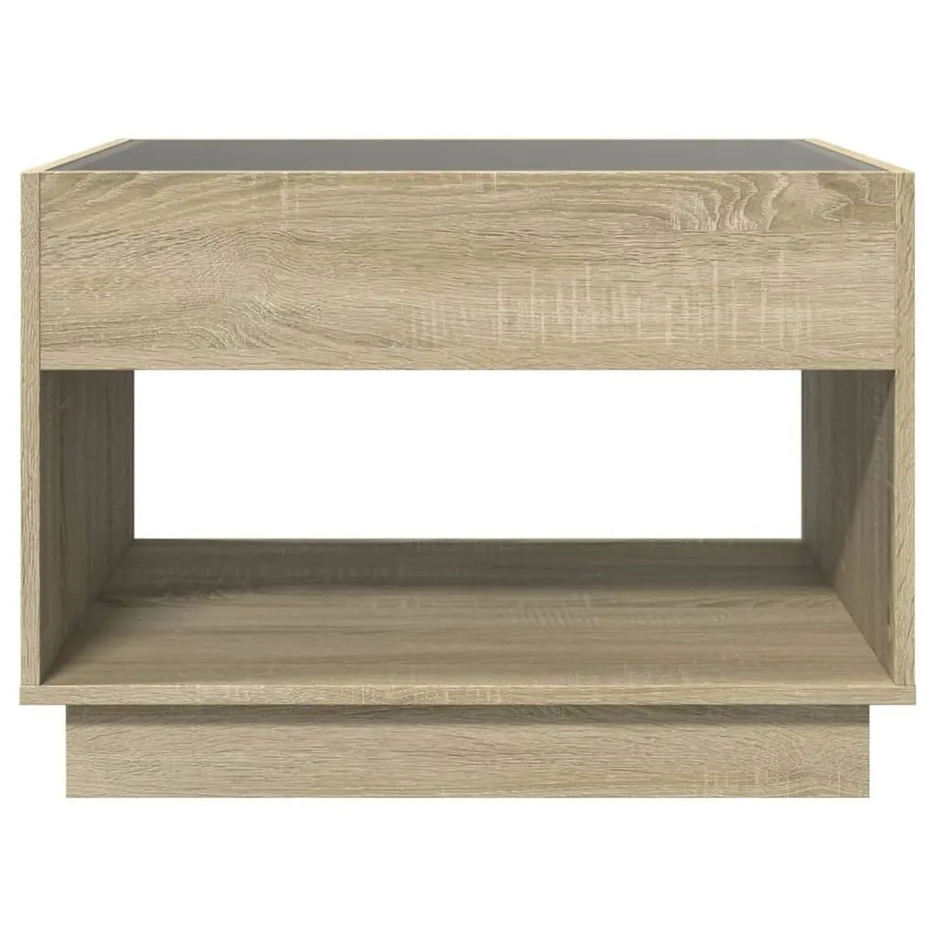 This Sonoma oak coffee table mixes modern style with practicality. The rectangular shape and smooth finish make it a fab centerpiece for your living room or hallway, whether you're having friends over or enjoying a quiet moment alone. Built-In RGB LED Lighting: Enjoy a unique atmosphere with integrated RGB LED lights that let you customize the vibe for your gatherings or chill time. Control the lights easily with a remote, and enjoy soft, ambient lighting that enhances the look of your room.Modern Aesthetic: The sleek Sonoma oak finish gives it a posh look and fits in with different interior styles. It's all about smooth surfaces and minimalist designs that cater to modern tastes.Versatile Usage: This coffee table isn’t just for coffee; it’s perfect for a variety of uses. Set down drinks, display decorative bits, or hold books and magazines—it fits in seamlessly anywhere.Sturdy Construction: Made from high-quality engineered wood, this table is built to last, supporting up to 88.2 lbs. You can count on it to stand the test of time while keeping its good looks.Dimensions and Design: With dimensions of 27.6 in by 19.7 in by 19.7 in, this compact table is ideal for medium spaces. Its rectangular shape allows it to fit perfectly in front of sofas or in hallways, balancing style with practicality.