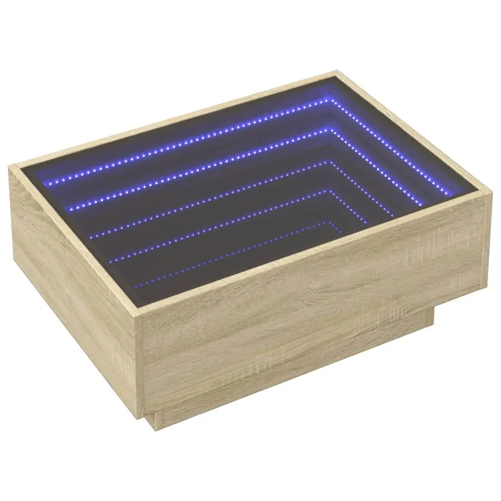 This coffee table has a classy design that mixes function and elegance, making it a fab centerpiece for your living room or bedroom. The Sonoma oak finish suits a range of styles, while the built-in LED lighting gives it a modern touch, lighting up your space and creating a welcoming atmosphere. Built-In LED Lights: Adjustable LED strip lights create a warm glow around the table that makes it a stunning highlight in your living area.Practical Surface: At 27.6 in long and 19.7 in wide, this table gives you ample space for drinks, magazines, or decor, keeping all you need within easy reach.Stylish Finish: The matte Sonoma oak finish not only looks good but is also durable, withstanding daily use in busy areas.Easy Maintenance: A quick wipe with a damp cloth keeps it looking fab, and steer clear of direct sunlight to protect the finish.Remote Control: Change the LED lights effortlessly to achieve the perfect mood for any occasion, whether you’re entertaining guests or enjoying a chill night in.