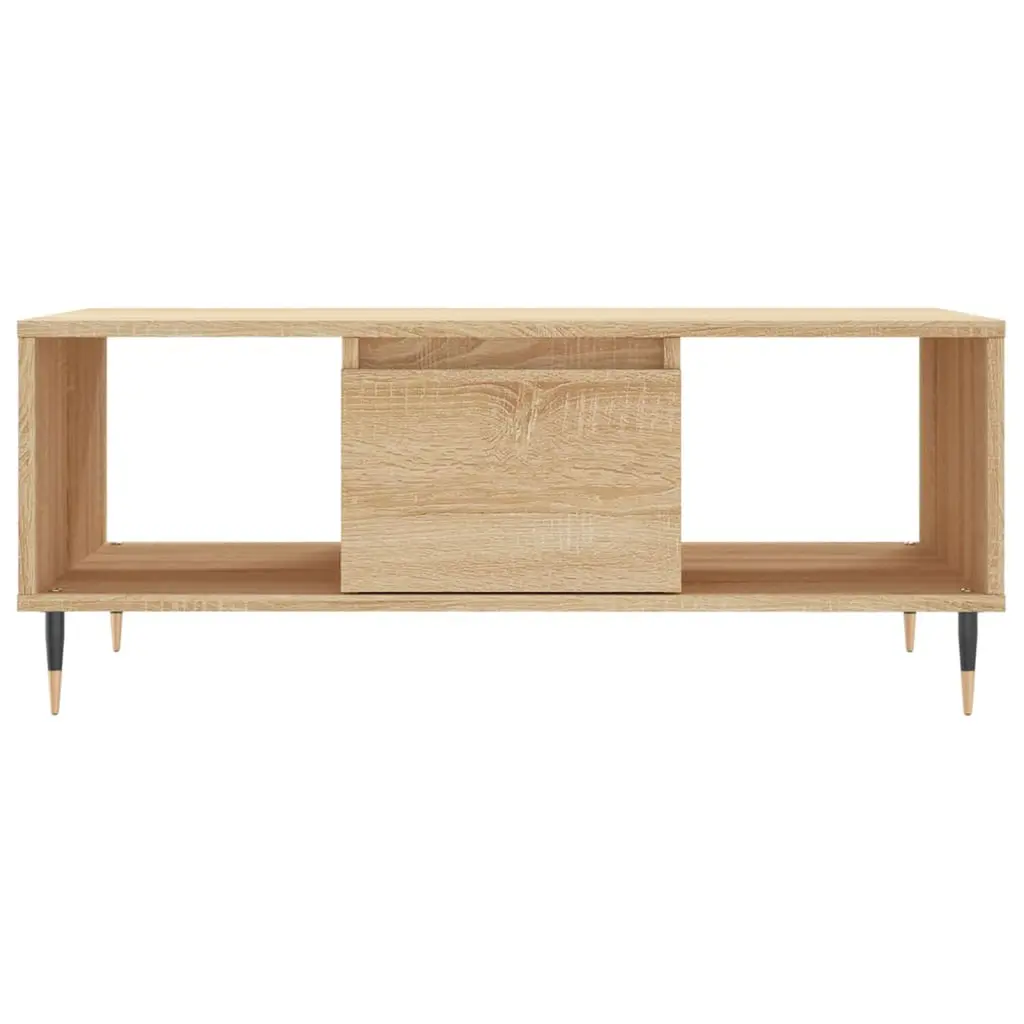 This coffee table has a beautiful Sonoma oak finish, bringing a warm and inviting vibe to your place. With its modern look and functional features, it serves as a versatile focal point in any room, whether you're hosting or just having a chill night in. Ample Storage: Perfect for organizing books, magazines, and remote controls. The drawer keeps small items neat. Durable Design: Made from engineered wood and metal, this table is built to last, providing a strong surface for years. Elegant Matte Finish: The matte finish adds sophistication and is easy to clean, keeping it looking sharp. Compact and Functional: Perfect dimensions for small to medium spaces, this coffee table is practical while staying stylish. Versatile Use: Great for serving coffee or displaying decorative items, it elevates any living area.