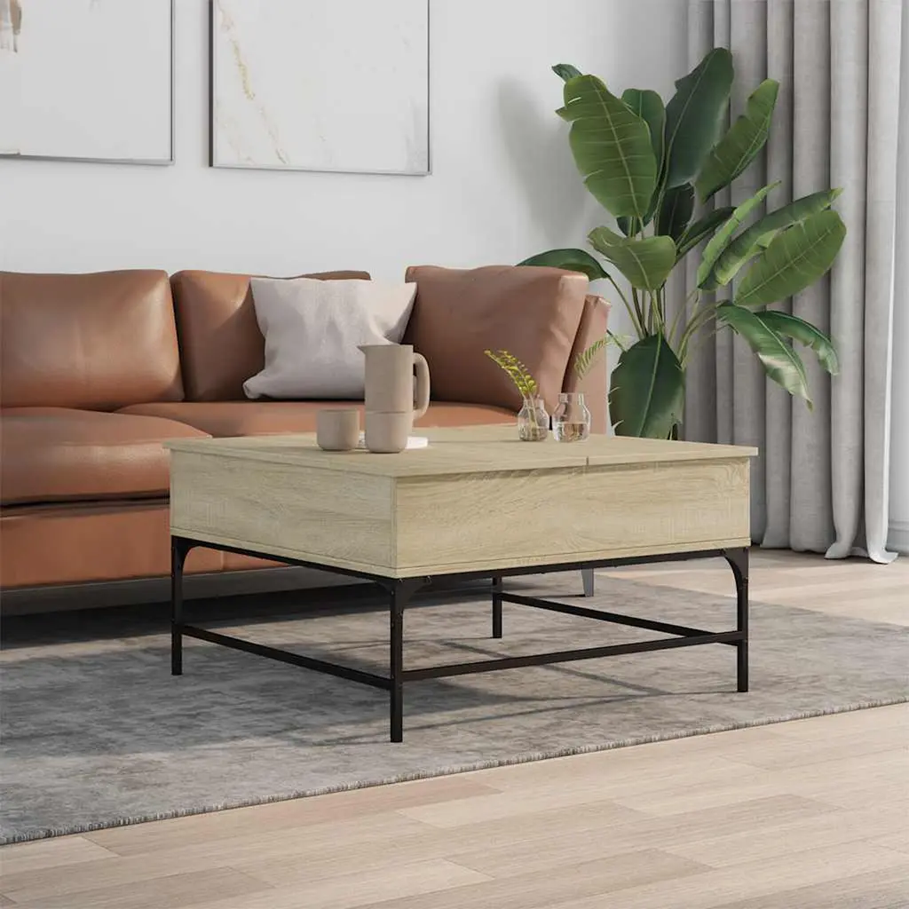 Vidaxl Coffee Table Sonoma Oak Engineered Wood, Metal Medium