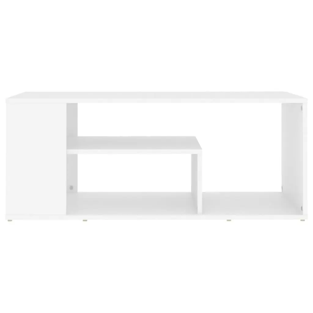 This coffee table brings a mix of modern style and practicality to your living room. With its clean white finish and engineered wood build, it’s a stylish solution for your coffee needs while providing ample storage for magazines, remotes, and other odds and ends. Ample Storage: With two shelves providing plenty of room for books, decor, and essentials, ensuring your living area is neat and organized. Each shelf's size lets you showcase items or keep personal belongings close at hand.Modern Aesthetic: Its sleek design fits various decor styles, adding a touch of contemporary chic to any space. The matte finish contrasts beautifully with traditional furnishings, making the room feel inviting.Durable Construction: Made from high-quality engineered wood, this coffee table offers strength and stability. The solid build ensures it lasts, giving you a dependable surface for drinks and snacks during social events.Easy Maintenance: Keeping this coffee table looking fresh is easy; just wipe it with a damp cloth. The top is stain-resistant, ensuring it stays looking good for ages.Ideal Dimensions: At 39.4 in long, 19.7 in wide, and 15.7 in high, this coffee table is perfect for smaller spaces while providing enough tabletop area for your needs. Its rectangular shape works well in various room layouts.