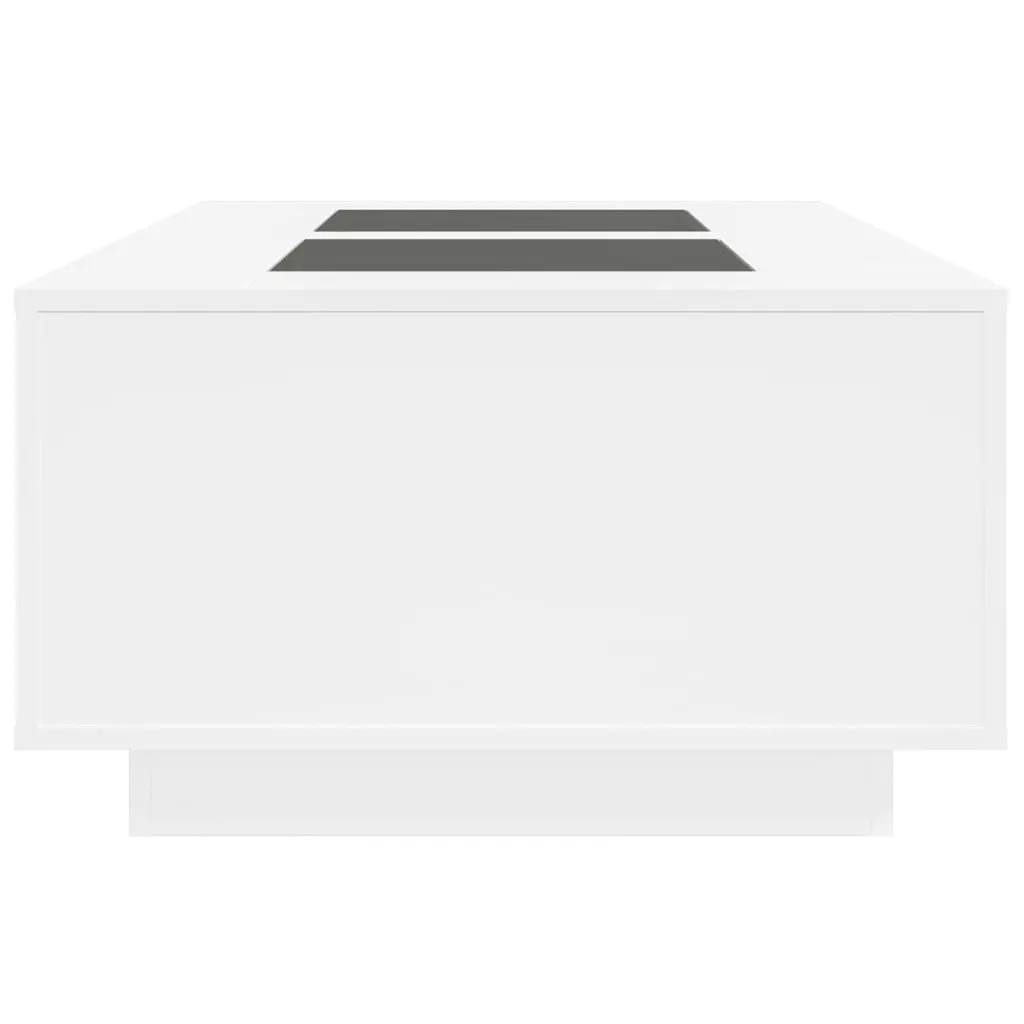 This modern coffee table measures 45.7 x 27.2 x 15.7 in and combines elegance with functionality thanks to its glossy white finish and cool LED lighting. Perfect for relaxed areas, it's a stunning centerpiece that adds style while being super practical, making any indoor space feel fresh. Built-In Lighting: The coffee table features integrated RGB LED lights that create a warm, inviting atmosphere throughout your living space, making it perfect for gatherings or quiet evenings. The soft glow can easily change the vibe of any room, letting you set the right mood for any occasion.Stylish Design: Its sleek, glossy white surface not only suits modern decor but also adds a dash of class to your interior. The table's clean lines and minimalist design guarantee it fits right into various styles, boosting the overall aesthetic.Durable Materials: Made from engineered wood and glass, this coffee table is built to last. The glossy finish helps repel moisture, so it stays looking fresh even with regular use.Versatile Use: Perfect for holding drinks, magazines, or decorations, this coffee table can serve multiple roles, working well as a side or end table. Its modern look fits in casual and classy settings alike.Compact Dimensions: At 45.7 in long, 27.2 in wide, and 15.7 in high, this table works great for smaller living spaces while still giving you enough surface area for everything you need. It’s light and easy to move around, fitting perfectly with your changing room layout.