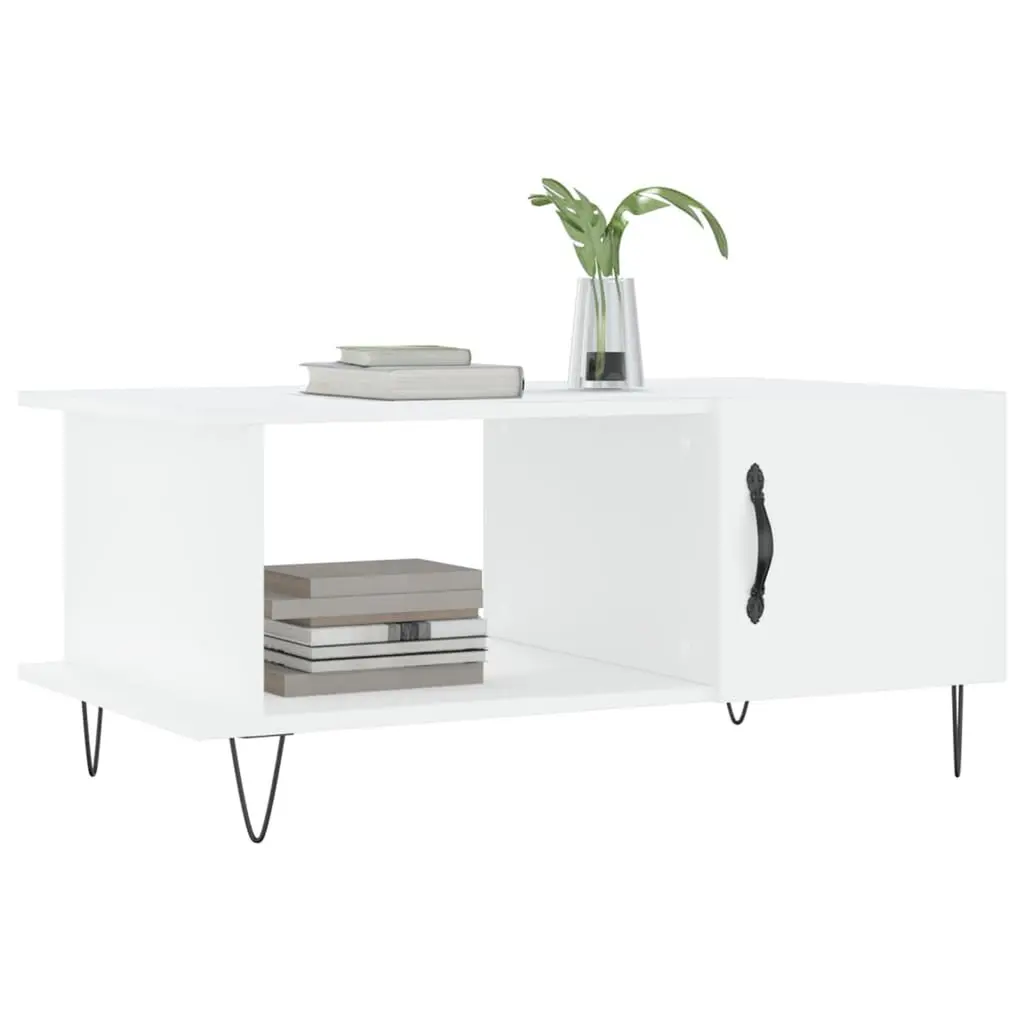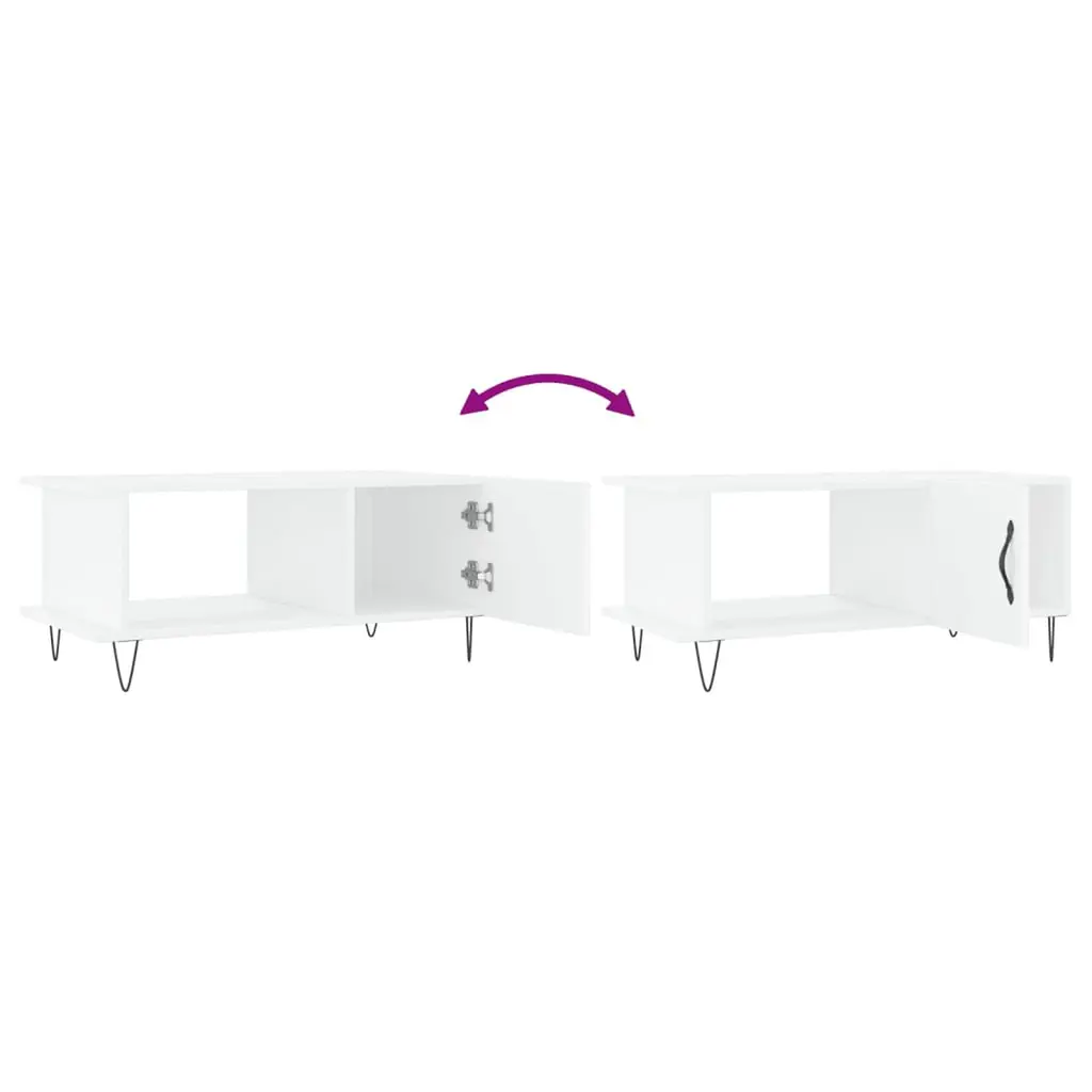 This modern coffee table is a true standout that blends function with style. Made mostly from engineered wood and featuring trendy hairpin legs, it fits right into any living room. Ample Storage: Two built-in compartments let you tuck away magazines and remotes, keeping your area tidy.Sleek Appearance: The shiny white finish gives a fresh, polished vibe, perfect for modern spaces.Durable Construction: Made from quality engineered wood and sturdy iron legs, this table is built to last.Versatile Usage: Works great as a coffee table or accent piece for various functions, from enjoying beverages to showcasing decor.Easy Assembly: Comes with simple instructions, so you can set it up in no time.