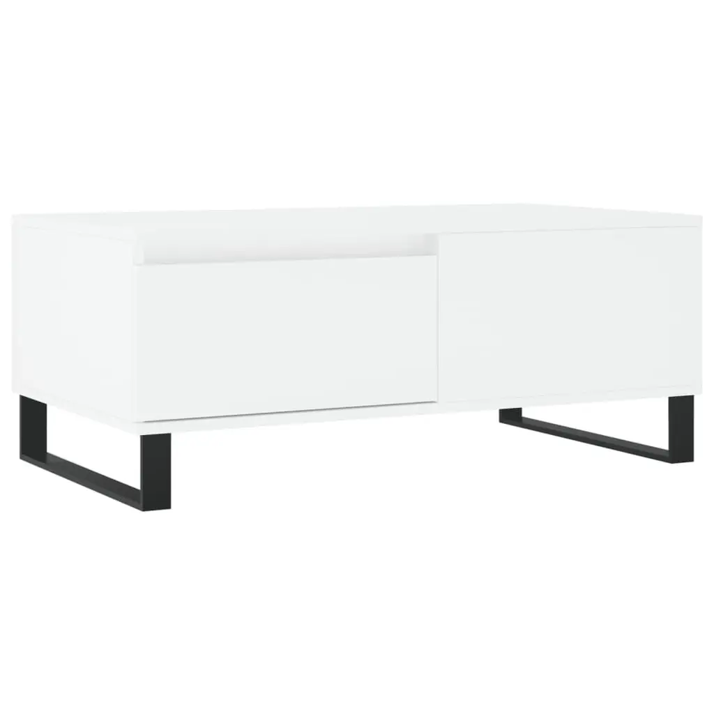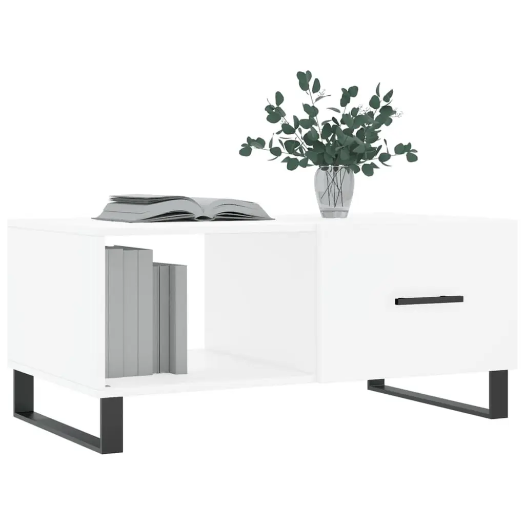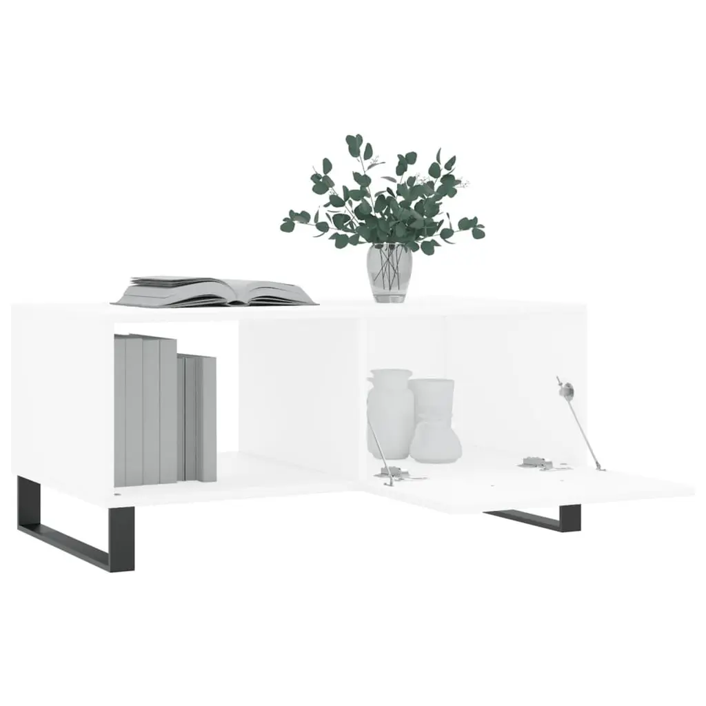 This modern coffee table is a mix of functionality and style, perfect for any living room. Its sleek white engineered wood top and stylish hairpin iron legs give it a trendy look. It works well with all decor styles and offers a handy space for coffee, books, or decorative bits. Stylish Appearance: The elegant matte white finish screams sophistication, while the hairpin legs add a cool mid-century look, fitting right into modern or contemporary homes. This design not only spruces up your living room but also sparks conversations.Ample Storage: With two compartments accessed through a hinged door, this coffee table takes your organization to the next level, hiding away essentials like magazines or remotes, keeping your space neat and tidy.Durable Construction: Made out of engineered wood and sturdy iron legs, this coffee table is up for daily use and remains stylish.Versatile Uses: Great for serving coffee or as a side table, it’s suited for all sorts of activities, from hosting guests to enjoying quiet nights in with a book, making it a smart addition to your place.Simple Maintenance: The smooth top and matte finish make it easy to clean – just a damp cloth will do. Using coasters can protect it from spills, keeping it looking great for ages.