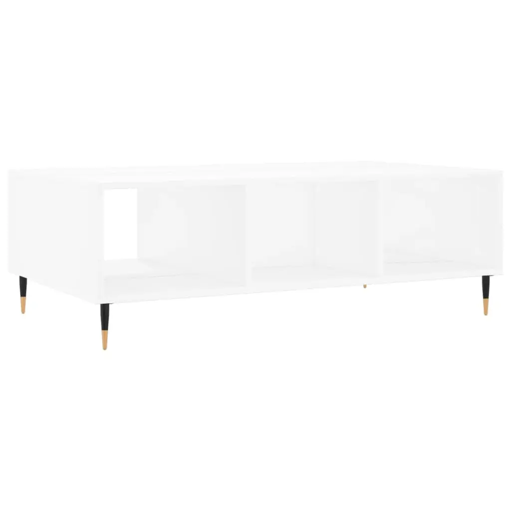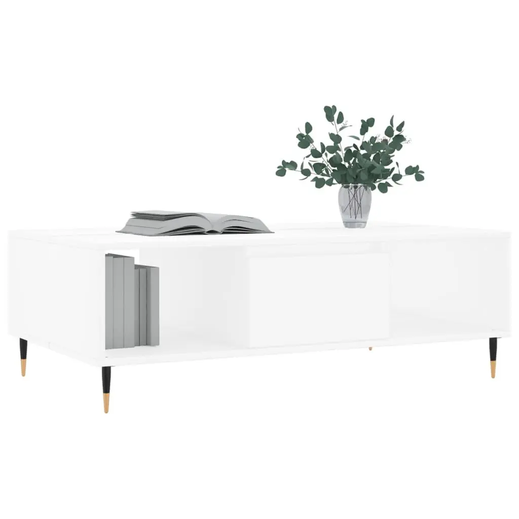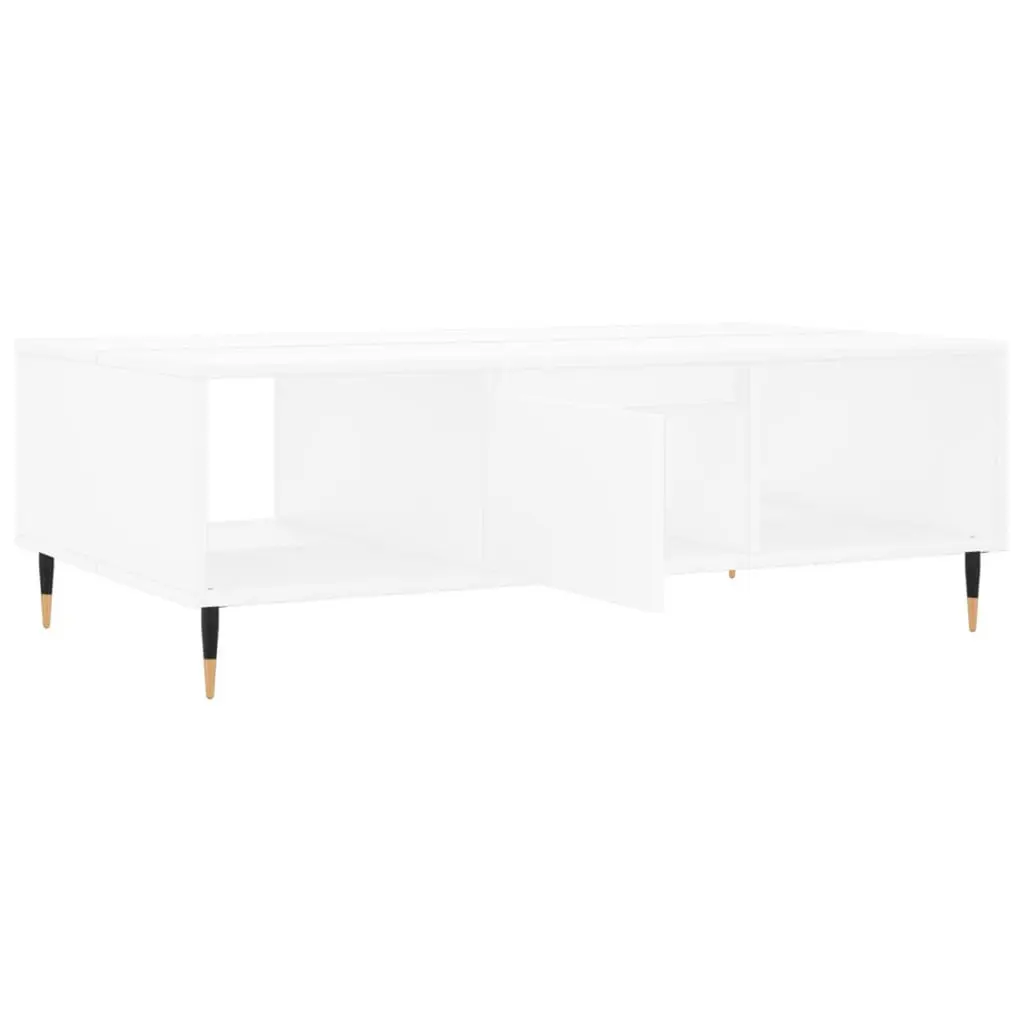 This Modern White Coffee Table is a fantastic addition to any space, combining simplicity with practical design. Made from sturdy engineered wood, its sleek matte finish and modern look not only enhance your decor but also give you a functional surface for drinks, books, and ornaments. It's a versatile choice for both laid-back get-togethers and practical setups. Stylish Minimalism: The clean lines and understated elegance of this coffee table go well with any decor style, making it a perfect fit for modern and minimalist spaces. Its minimalist approach reduces visual clutter while giving your room a polished vibe.Sturdy Build: Made with high-quality engineered wood and iron legs, this coffee table is built to last, ensuring it can handle everyday use without losing quality. The tapered legs also add a stylish touch while providing a solid base.Plenty of Storage: With three spacious compartments, this table has ample room to keep your living room essentials tidy, from magazines to coasters. It’s perfect for those who value style and practicality.For Any Room: Whether used in the living room for casual coffee serving or in your office as a display surface, this multifunctional coffee table meets various needs and looks great in all environments.Perfect Size: At 40.9 in long, 23.6 in wide, and 13.8 in high, this coffee table is just right for medium spaces. It offers a nice surface area without overwhelming your current furniture layout. It’s designed to fit effortlessly into your favorite spot.