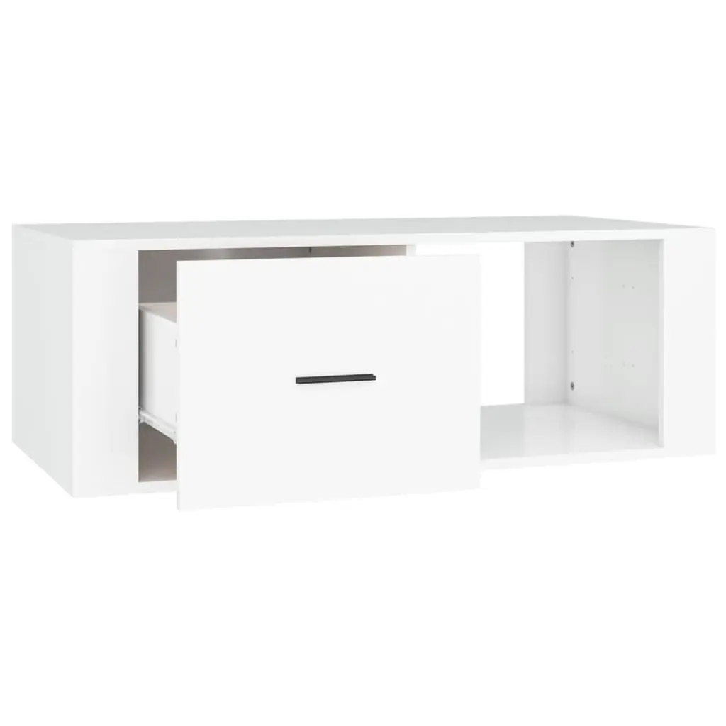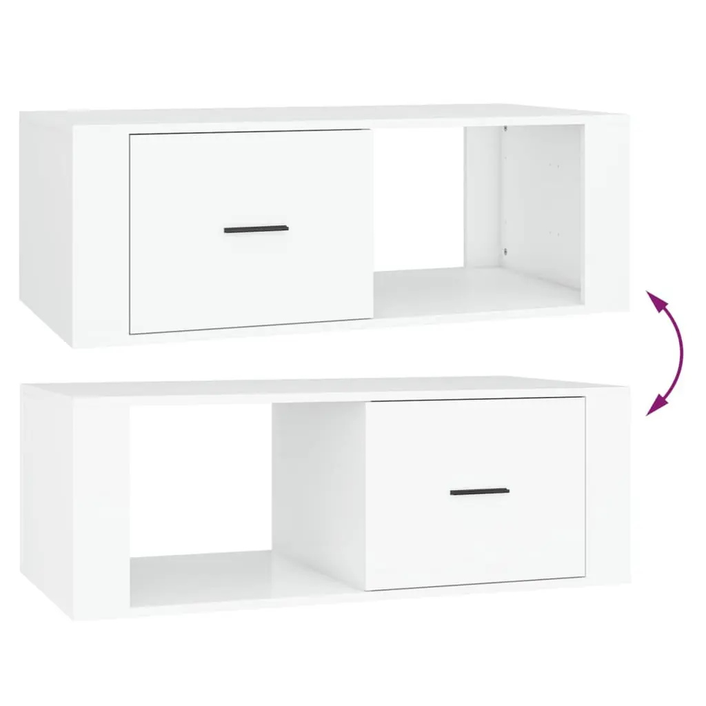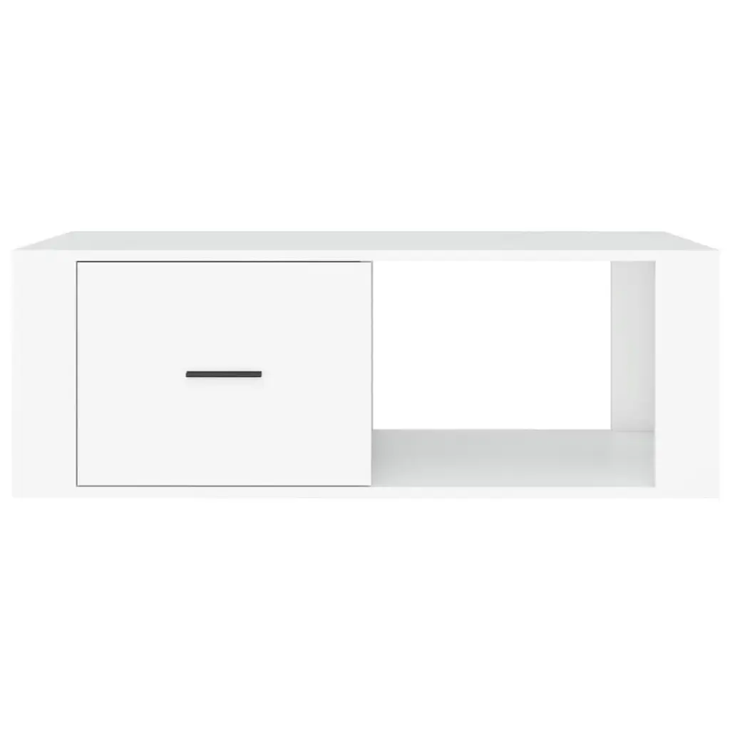 This modern coffee table is both functional and stylish, making it a great addition to your living area. With its rectangular shape and pristine white finish, it reflects a contemporary vibe, suitable for all kinds of settings. The spacious surface is just right for drinks, snacks, books, or any essentials, bringing a clean, bright look to any room. Plus, it easily fits into different interior styles, adding versatility for any occasion. Loads of Storage: The table has a drawer for smart storage, keeping your area tidy. Perfect for stashing away magazines, remotes, or coasters - everything you need in easy reach but out of view. Chic Design: With its sleek matte white finish, it complements any furniture, becoming a stylish focal point in your living room. Easy to Maintain: Made from moisture-resistant engineered wood, just a quick wipe with a damp cloth is all it takes to keep it looking fab. Smart Construction: Built tough with sturdy engineered wood for lasting use. Great for everyday wear without losing its charm. Versatile Use: Whether it's coffee, snacks, or holding a plant, this table adapts to various uses. Ideal for family gatherings or special occasions, it’s a must-have in your living area.