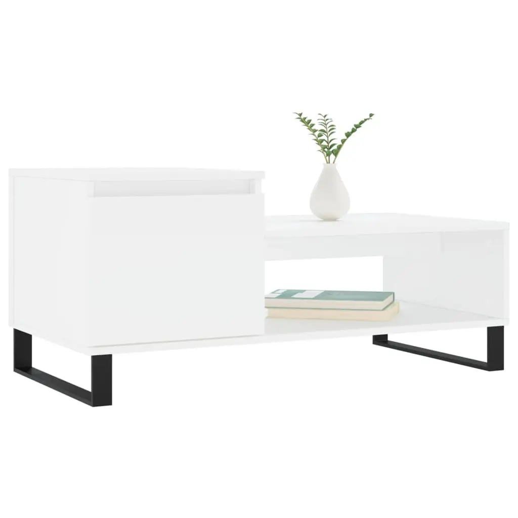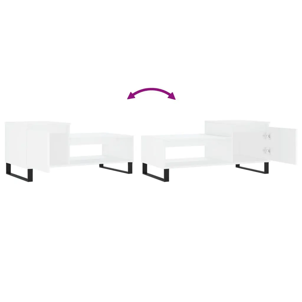 This modern coffee table turns any living area into a trendy spot, showing off a sleek, white finish that grabs your attention. With its clean lines and rectangular shape, it mixes practical use with contemporary design, making it a standout feature in your living room or office. Ample Storage: This coffee table features two roomy storage spaces, perfect for stashing magazines, remotes, or books. It helps keep your living area looking neat. Sleek Design: The table's got a minimalist vibe with its matte white finish, fitting right in with various styles and making it an easy addition to any home. Durable Construction: Built from top-quality engineered wood and strong metal legs, this table not only looks great, but it’s designed to withstand everyday use, even in busy homes. Easy to Maintain: Its smooth surface makes cleaning a breeze. Just give it a quick wipe with a damp cloth to keep it looking like new—great for those with a busy lifestyle. Versatile Functionality: Whether you're using it for snacks, showing off your decor, or just as a hard surface for coffee, this table does it all. It’s designed for everyone, making it universally appealing.