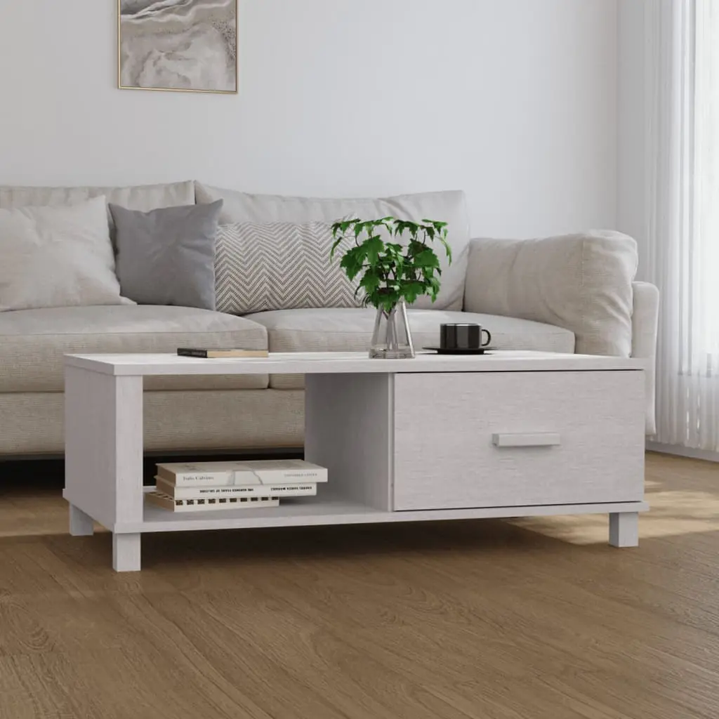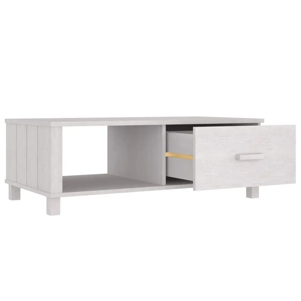 This coffee table, perfect for modern living rooms, has a sleek and minimalist design that makes any space look better. With its lovely white finish and smooth feel, it’s not just a functional piece for drinks and books; it also stands out as a stylish element of your home decor. Ample Storage: The coffee table has a roomy drawer to stash magazines, remotes, and other living room bits. This hidden storage keeps your space free of clutter while still being easy to access your stuff.Stylish Design: With clean lines and a matte finish, this table gives off a contemporary vibe, making it a perfect fit for any modern decor. Its white color blends nicely into different styles while adding a touch of elegance.Durable Material: Made from solid pine wood, this coffee table is built to last. Its solid structure is perfect for day-to-day use, making it a reliable addition to your living area.Easy Maintenance: Thanks to its smooth surface, this table is a breeze to clean. Just give it a wipe with a dry cloth to keep it looking great without needing harsh cleaners.Versatile Use: Great for coffee serving or as a stylish piece, this table ramps up your living room’s convenience. Whether having friends over or enjoying a quiet night in, it fits right in with whatever you’re doing.