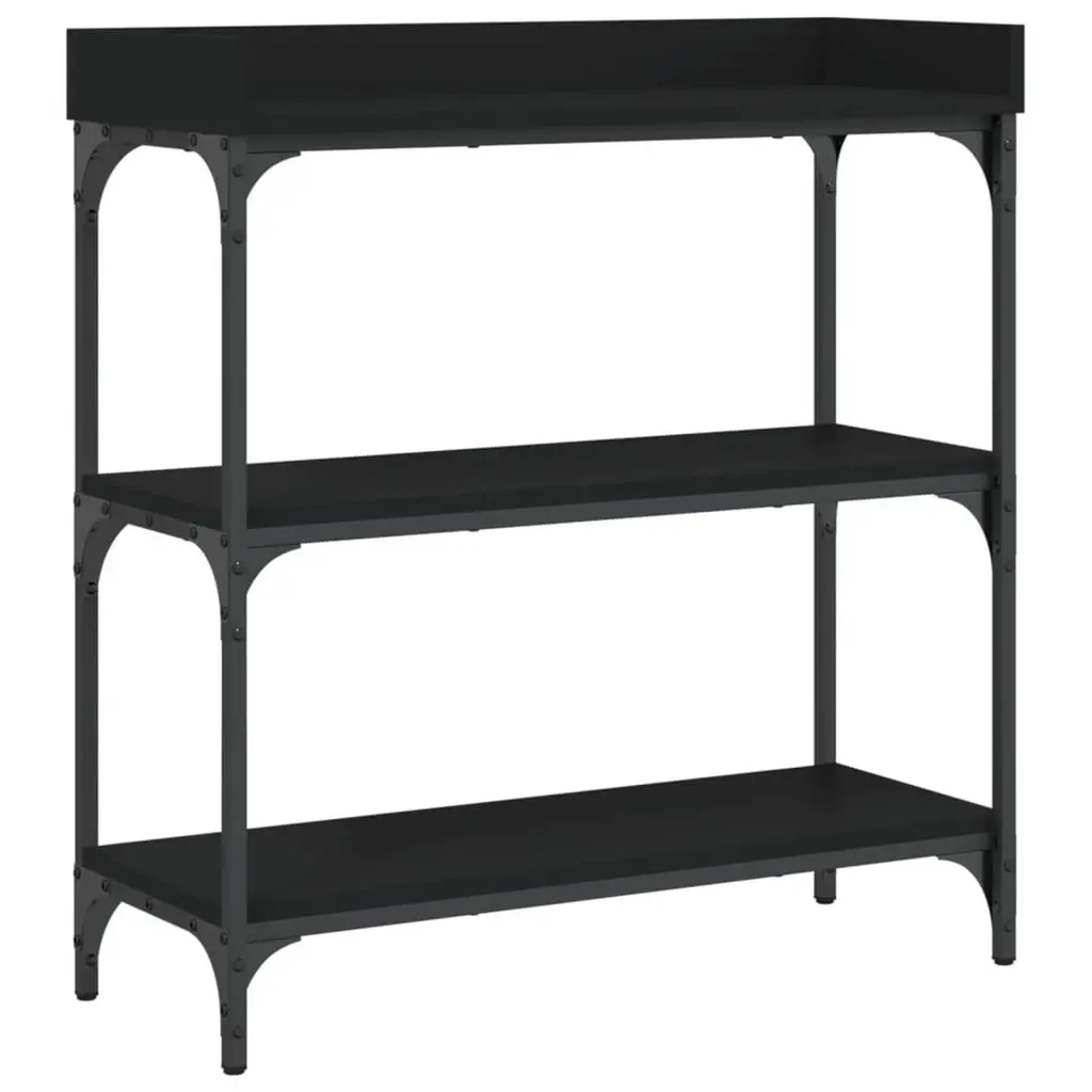 This industrial-style console table blends modern looks with practicality, perfect for entryways or hallways. With its sleek black finish and sturdy engineered wood, it's made to complement contemporary spaces while offering handy storage. Fashion-Forward Aesthetic: The console table boasts a distinct industrial style, blending raw materials and minimalist design to create an eye-catching feature in any space.Generous Storage Capacity: With three sturdy shelves, this table offers plenty of room to store essentials, display decorative items, or flaunt your books, boosting your home’s organization and visual appeal.Customizable Height: With its adjustable feet, this console table can be tweaked to level it out on uneven floors, keeping it stable no matter the setup.Durable Materials: Crafted from engineered wood and a metal frame, this piece is built to last while efficiently handling moisture, making it perfect for indoor spaces without losing style.Simple Assembly: With all mounting gear included, putting this console table together is a piece of cake, so you can start enjoying your new furniture straight away.