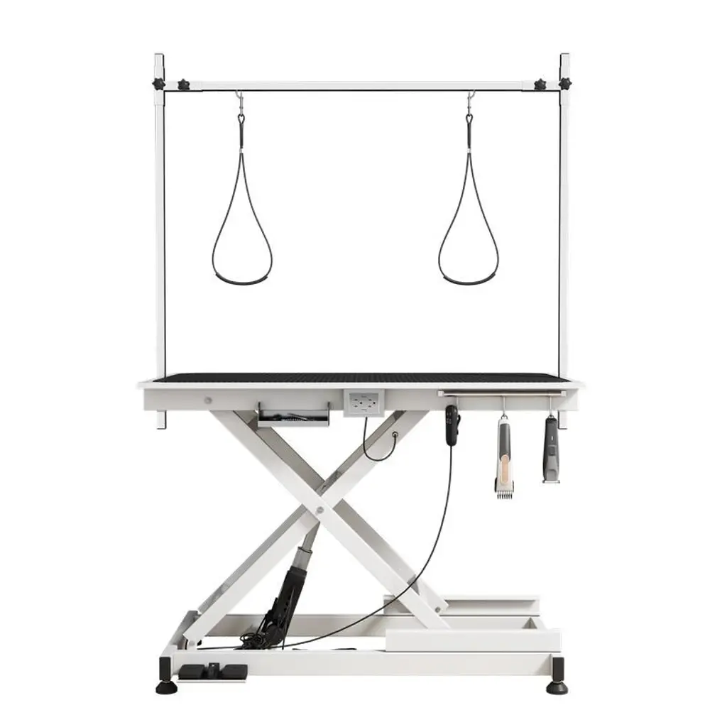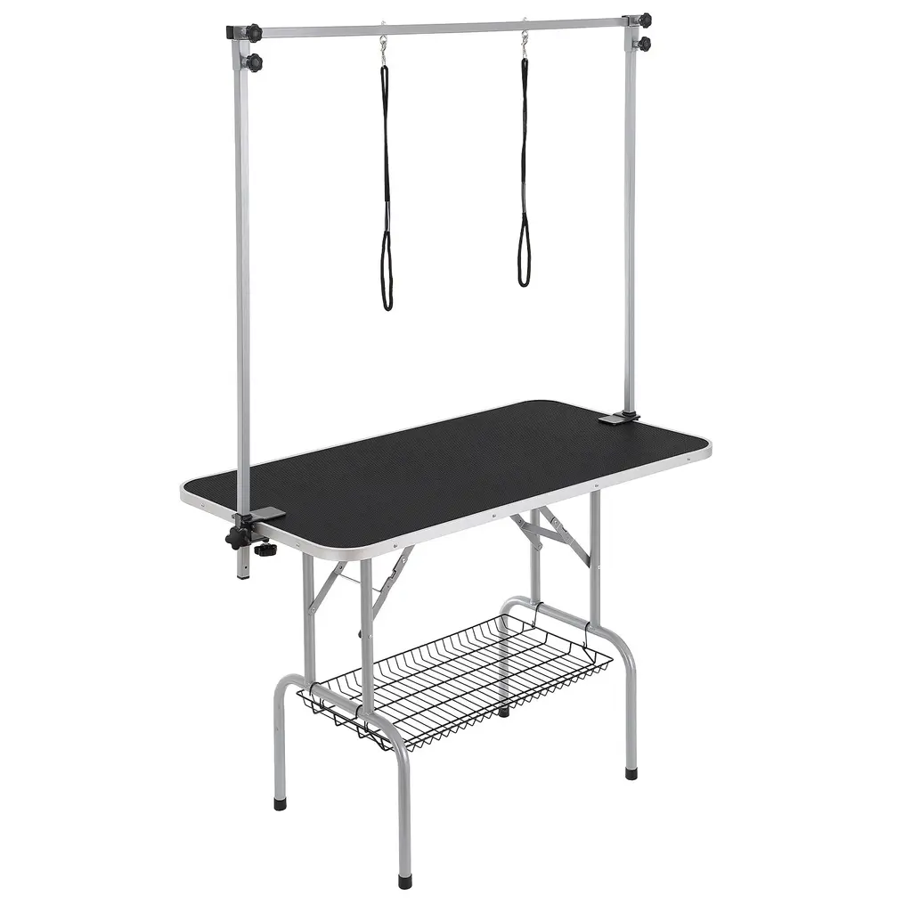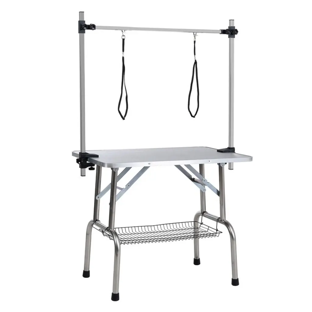 This Adjustable Dog Grooming Table is the perfect choice for pet owners after a reliable, versatile grooming spot. Its user-friendly design not only gives a fab experience for pets but also adds a smart look in any utility or bathroom, making it essential for pet pros and lovers alike. Height Adjustable: Manual height adjustment to suit dogs of different sizes, making it easy to use in any grooming situation.Compact Design: Folds away for easy storage when not in use, handy for mobile groomers or those with limited space.Safety First: The anti-slip base keeps the table stable, ensuring safe grooming for pets.Durable and Stylish: Made from stainless steel and engineered wood, the table combines durability with a sleek matte finish that’s easy to keep clean.Multi-Use: Great for grooming, but can also be used as a chic vanity for makeup, so it’s super versatile.