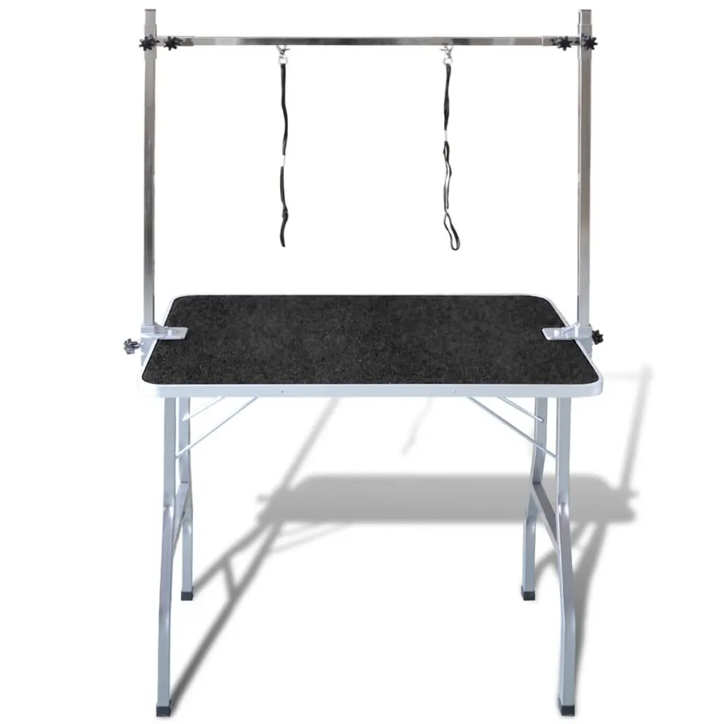 This adjustable pet dog grooming table is a must-have for pet owners and pro groomers. With its sleek black design, it brings style and practicality to any grooming spot. You can adjust the height for comfy use, whether you're grooming a tiny cat or a hefty dog, and it collapses for easy storage when you're not using it. Plus, it's sturdy yet lightweight, making it perfect for mobile grooming gigs. Height-Adjustable: You can adjust the height of the table to make your grooming session comfy for you and your pet. Collapsible Design: This grooming table folds up easily for storage or transport, perfect for groomers on the move or those tight on space. Non-Skid Bottom: The table's non-skid bottom keeps it in place, so it won’t slide around while you're busy grooming. Durable Construction: Made from engineered wood and powder-coated iron, this table will last you ages while still looking sharp. Included Accessories: Comes with two nooses and adjustable arms to help keep your pets in place safely while grooming.