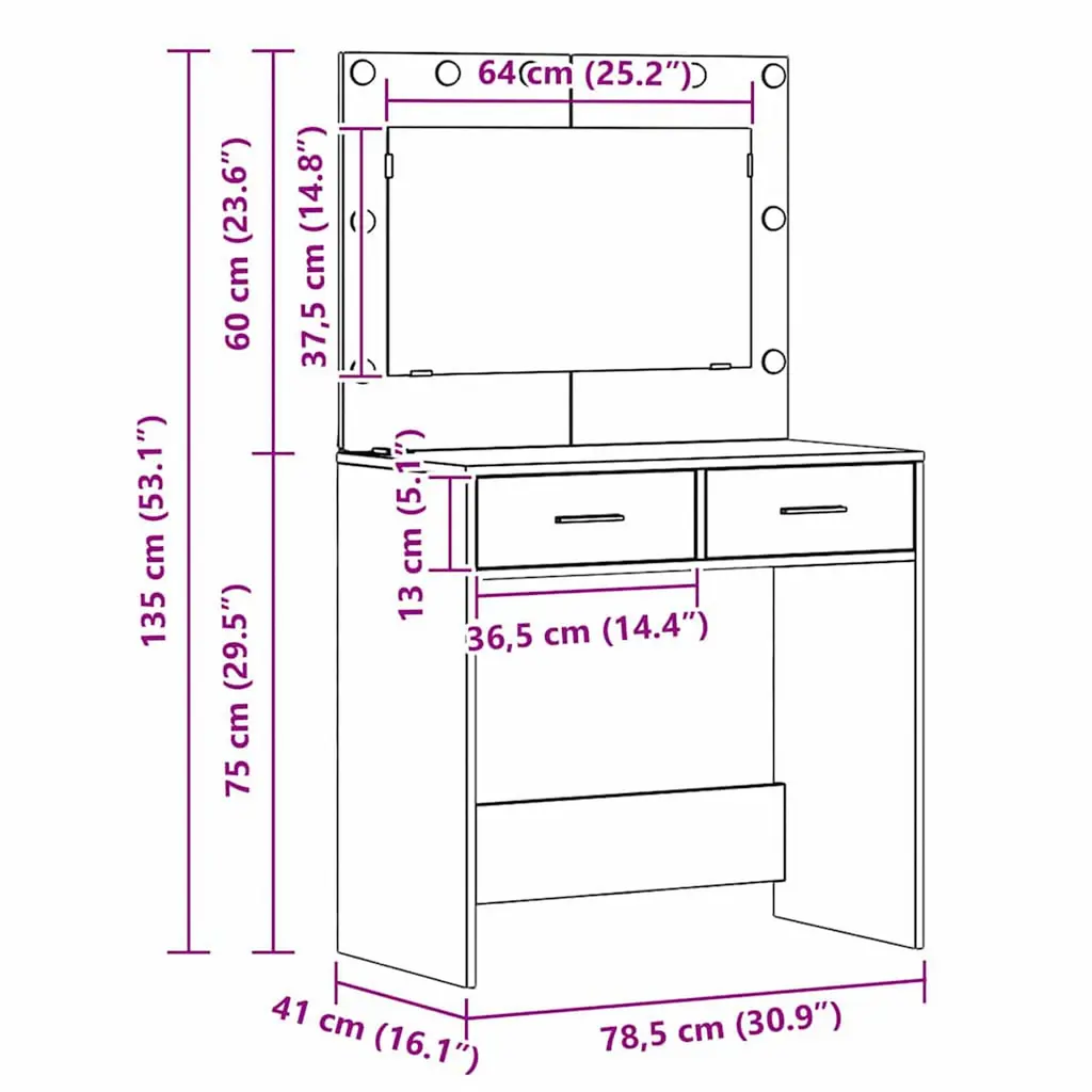 Vidaxl Dressing Table Black Oak 78.5 X 41 X 135 Cm Engineered Wood