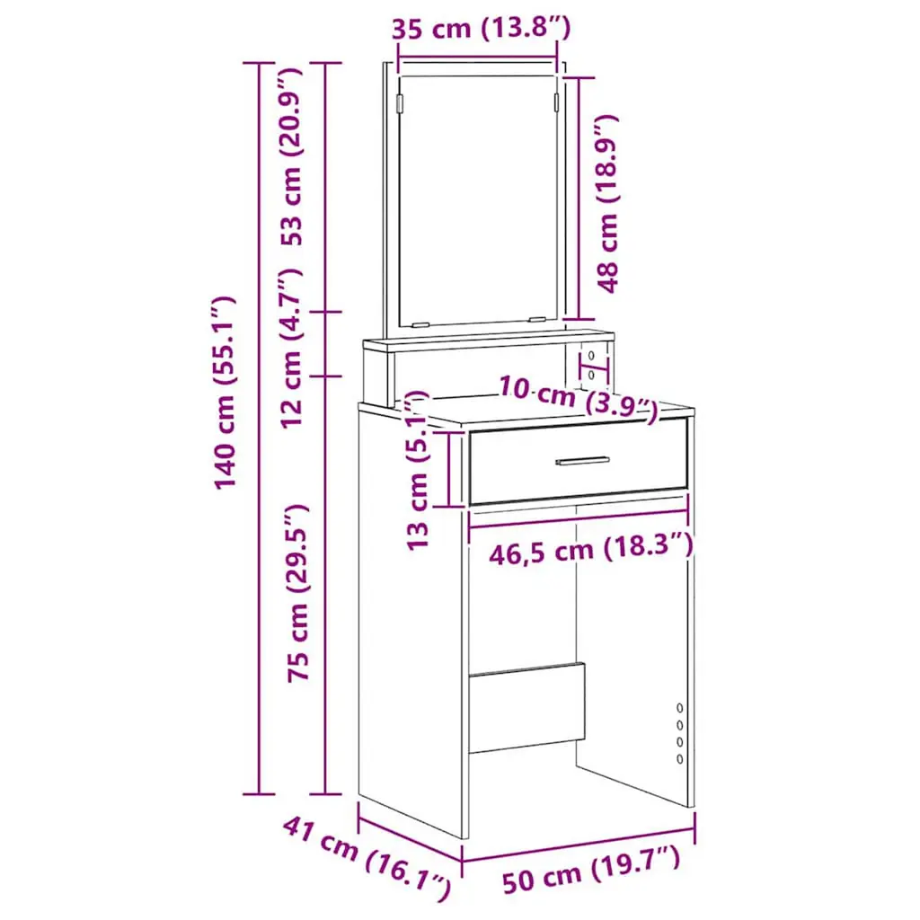 Vidaxl Dressing Table Concrete Grey 50 X 41 X 140 Cm Engineered Wood