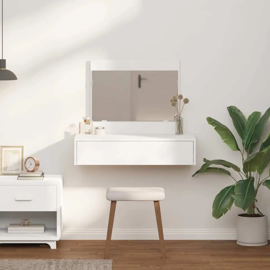 This modern dressing table nails sleek design and practicality, mixing minimalist looks with everyday usability. Perfect for a stylish bedroom, its engineered wood build gives it a polished vibe that fits right in with any décor. With its simple elegance, it’s ideal for anyone wanting a blend of class and practicality in their personal space. Engineered Wood Material: The dressing table is made from high-quality engineered wood, giving you a solid and durable surface. It holds up to wear and tear, so it stays looking good for years. The smooth top is a breeze to clean, making it fab for everyday use.Built-in Storage: With drawers made from engineered wood, this dressing table gives you plenty of room for beauty products, accessories, and more. Each drawer opens easily, making it super convenient while adding a stylish touch by keeping your essentials organized and close at hand.Modern Style: Designed with a modern touch, the dressing table features clean lines and minimal decoration. Its classy look makes it a versatile piece that fits seamlessly into any bedroom décor, adding elegance without overwhelming the room.Useful Mirror: With a flat mirror, this dressing table offers a clear and accurate reflection, perfect for grooming and applying makeup. The simple surface is designed for crystal-clear images, making your daily grooming a bit easier.Easy Assembly: This dressing table is simple to put together, thanks to clear instructions that require two people for setup. The straightforward process means you get a stable assembly without much hassle, so you can enjoy your new dressing table quickly.