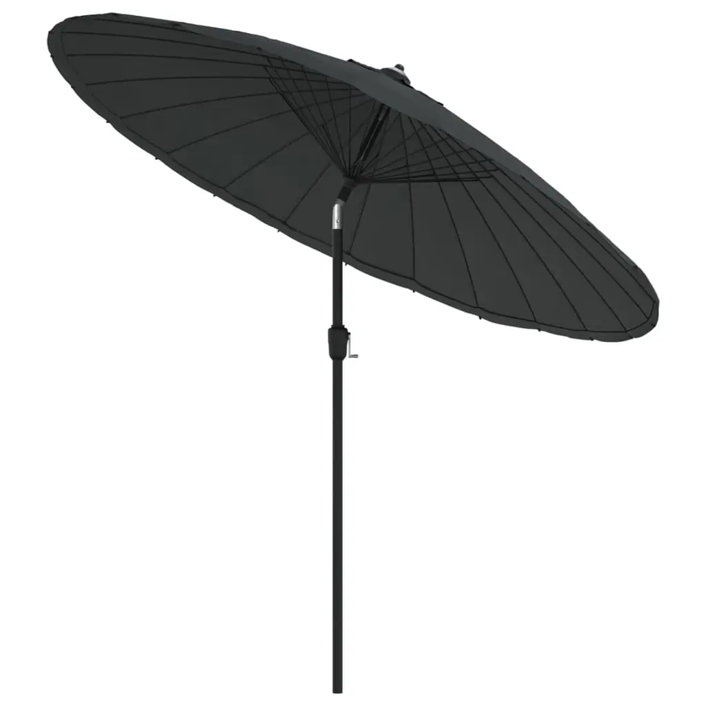 This trendy outdoor garden parasol is made to provide solid sun protection while looking good in your outdoor areas. With its stylish anthracite color and sleek design, it fits in nicely on balconies and patios, making it a smart pick for those wanting both function and flair. Durable Construction: Made from UV-resistant polyester fabric and a strong aluminum pole, this parasol is built to last and handle outdoor conditions, ensuring long-term use.Adjustable Design: The tiltable feature lets you easily adjust the umbrella angle, giving you max shade coverage throughout the day while effectively blocking UV rays.Easy to Use: The crank system makes opening and closing the parasol a breeze, enhancing user-friendliness for everyday use.Weather Resistant: Designed for outdoor use, this parasol can handle different weather, providing reliable shelter from the sun and light rain.Large Coverage: With a whopping 106.3 in diameter, this parasol offers plenty of shade, making it perfect for socializing, eating, or relaxing on sunny days.