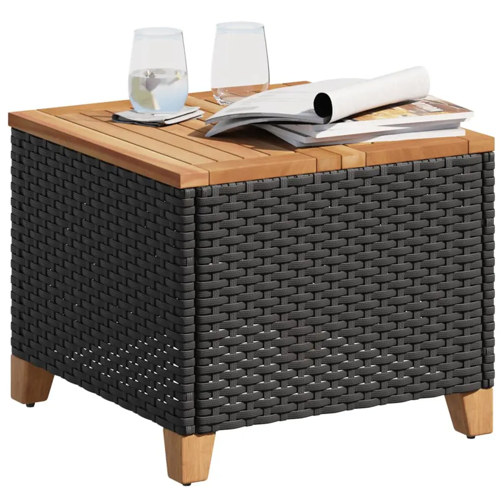 This garden table is a breezy mix of style and function, making it a favorite for your outdoor space. Perfect for small gatherings, the square top has plenty of room for drinks and snacks while enhancing the look of your balcony or patio. High-Quality Materials: Made from UV-resistant poly rattan and solid acacia wood, this table is built to last against the sun and weather. The sturdy materials maintain their look and shape, providing outdoor lovers peace of mind. Striking Color Combination: The sleek black frame paired with the deep brown top creates a beautiful look that fits any outdoor setting. This color scheme allows it to blend right in with any style. Compact and Functional: With dimensions of 17.7 x 17.7 in. and a height of 14.6 in., this table is made for cozy spots on patios and balconies without taking up too much space. Its small size makes it a flexible option for any environment. Effortless Assembly: Set this garden table up without any hassle, thanks to the clear instructions included. One person can easily put it together with just a screwdriver, making it accessible for everyone. Suitable for Social Occasions: Perfect for serving coffee or light bites at outdoor get-togethers. Its sleek, modern style is perfect for adults wanting a smart yet practical option for hosting friends.