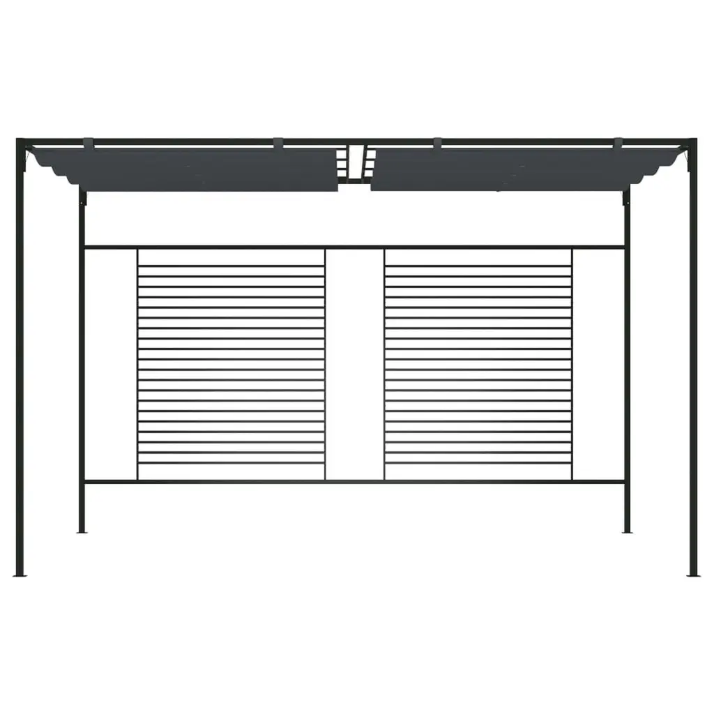 This gazebo canopy sports a sleek, modern design that spruces up any outdoor area. Measuring 13.1 x 9.8 ft, it gives loads of shade for gatherings, letting you enjoy warm summer days without worrying about UV rays. Retractable Roof: The roof can easily be pulled back to adjust for changing weather, giving you flexibility between sun and shade just when you need it. This feature makes for a much more enjoyable outdoor experience without the worry of surprise rain or too much heat.Durable Fabric: Made from high-quality 180 g/m² polyester, the canopy is UV-resistant, ensuring it lasts outdoors. It keeps you protected from sunlight while withstanding wear and tear from the environment.Spacious Design: With space for up to 8 people, this gazebo is perfect for family get-togethers, barbecues, or simply relaxing on the balcony. Its roomy setup creates a welcoming vibe for friends and family to chill out.Easy Setup: It takes just two people and basic tools like a screwdriver and spanner to assemble this gazebo. The simple setup means you can get your outdoor shade sorted quickly and make the most of your space sooner.Contemporary Style: The chic anthracite color and matte finish really polish off how the gazebo looks, making it a stunning addition to any outdoor hangout. This modern style fits smoothly into different decor tastes, giving you a smart focal point.