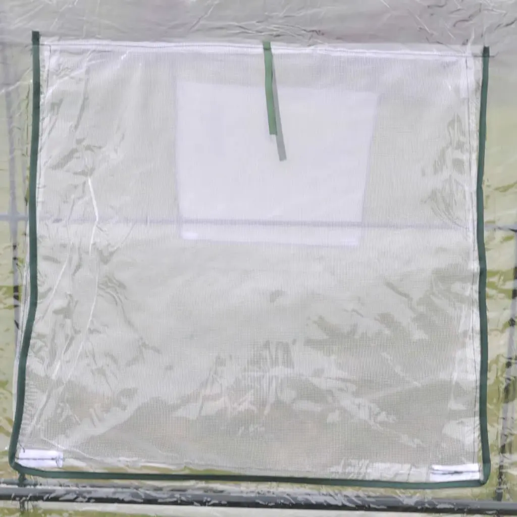 This Large Portable Outdoor Greenhouse gives you loads of space to take care of your plants in the best environment. It’s light yet strong, making it easy to set up anywhere, and perfect for year-round gardening whether you're at home or school. Robust Construction: Made with powder-coated steel, this greenhouse is built to last and can handle all sorts of weather. It’s stable, making it a solid choice for keeping your plants safe all year round. Enhanced Atmosphere: The clear PVC cover lets the sun shine through, creating a lovely warm microclimate just right for seedlings. This speeds up plant growth, which is great for any gardening project. Accessibility: The zipped front door makes it easy to get in and out, plus it provides ventilation to keep the air flowing. This means you can take care of your plants without breaking a sweat. Versatility: Designed for outdoor use, this greenhouse can house all sorts of plants, keeping them warm and healthy. It's perfect for growing veggies, herbs, or flowers all year round. Space Efficient: Measuring 177.2 in x 74.8 in x 78.7 in, this portable greenhouse gives you plenty of room for a mix of plants without feeling cramped.