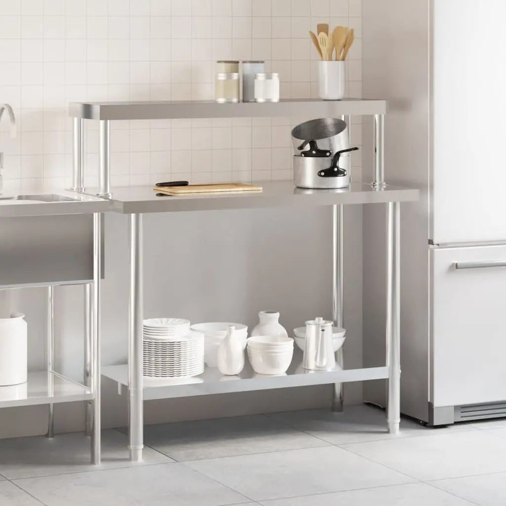 Vidaxl Kitchen Work Table With Overshelf 43.3"x21.7"x47.2" Stainless Steel