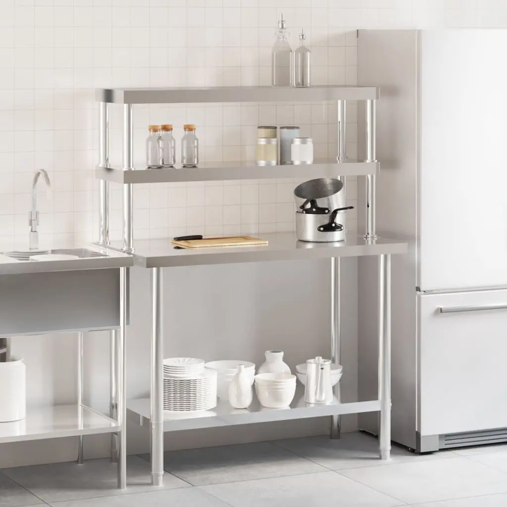 Vidaxl Kitchen Work Table With Overshelf 43.3"x21.7"x59.1" Stainless Steel