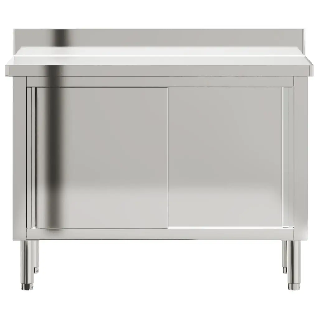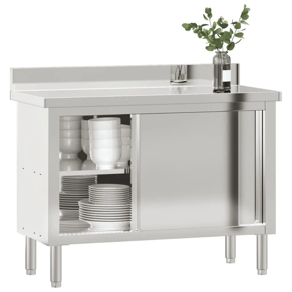 Vidaxl Kitchen Work Table With Sliding Doors Stainless Steel
