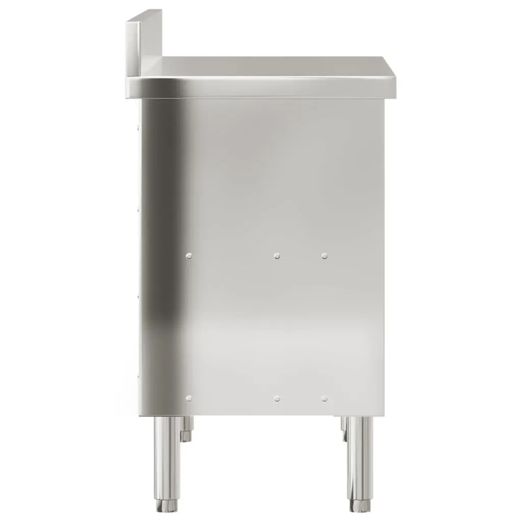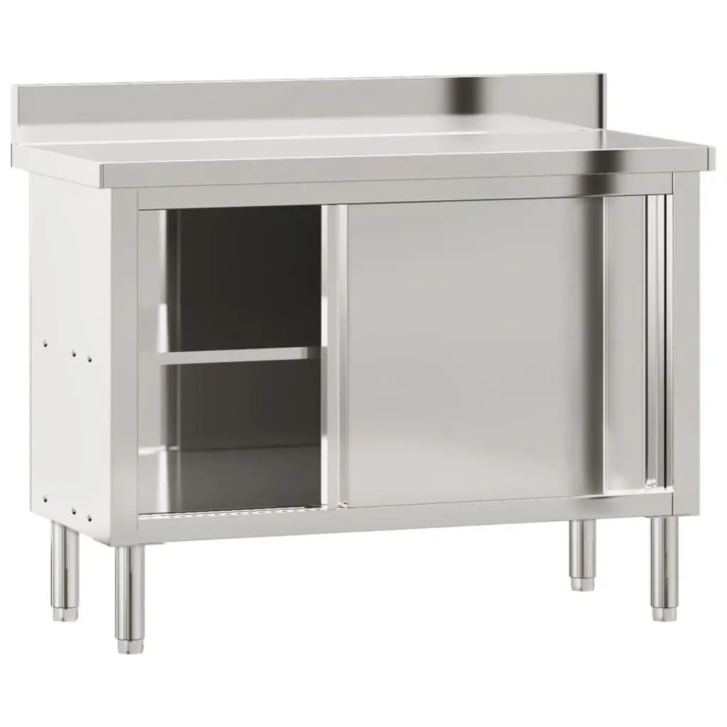 This versatile kitchen work table is perfect for food preparation and storage, making it an ideal addition to any kitchen, restaurant, school, or other commercial setting.Durable and stable construction: The work table is made of stainless steel for years of reliable use. The smooth surface is easy to clean and maintain, ensuring a hygienic food preparation area.Ample storage space: This table features a convenient bottom shelf, allowing you to keep cleaning supplies, kitchen utensils, and other tools within easy reach.Sliding door design: The sliding door design of this kitchen table provides convenient access to ingredients and supplies.Adjustable feet: The adjustable feet with a non-slip design ensure the stainless steel table remains stable and will stay put, protecting the floor from damage.Warning:To prevent it from tipping over, this product must be used with the provided wall attachment device.