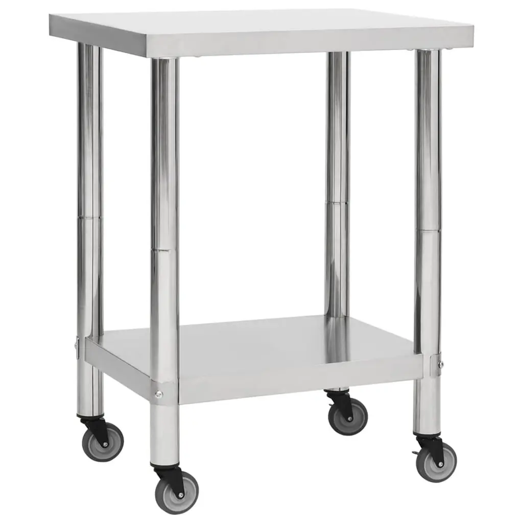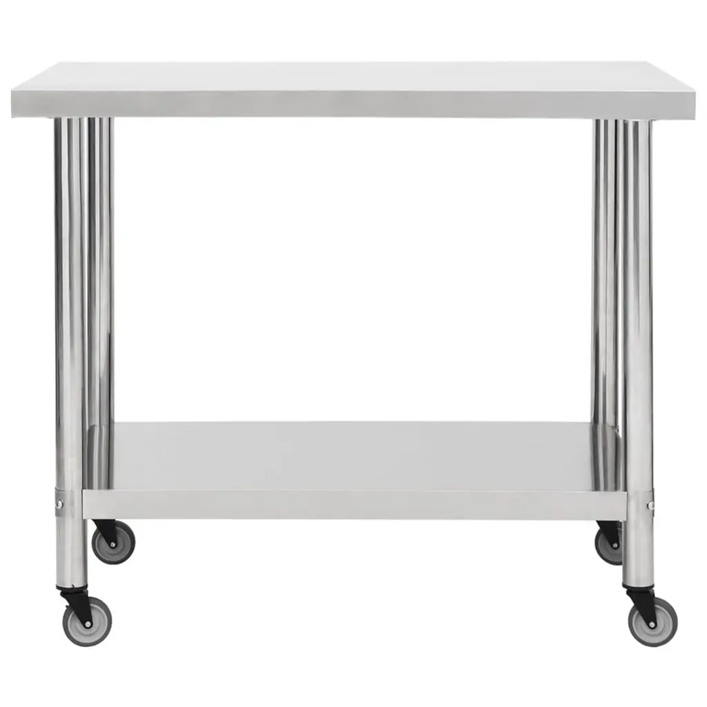 Vidaxl Kitchen Work Table With Wheels 39.4"x23.6"x33.5" Stainless Steel