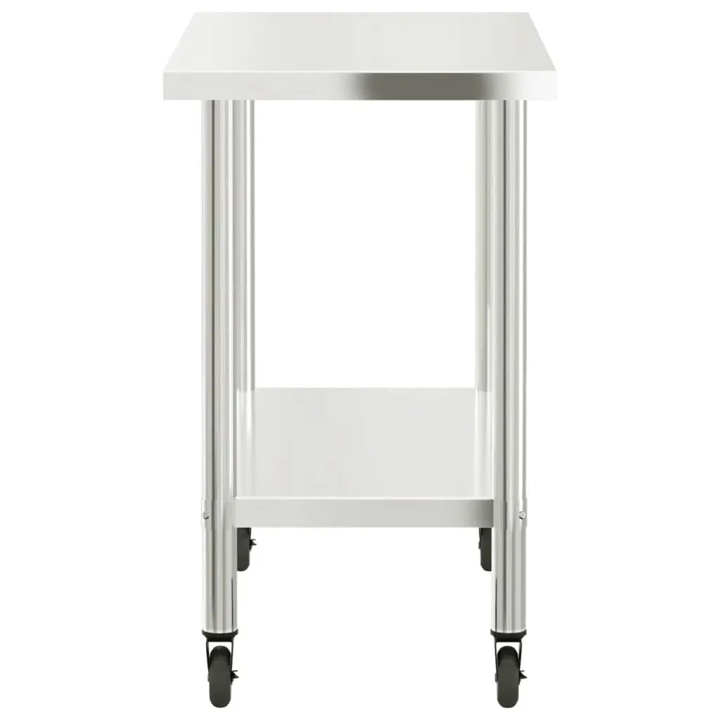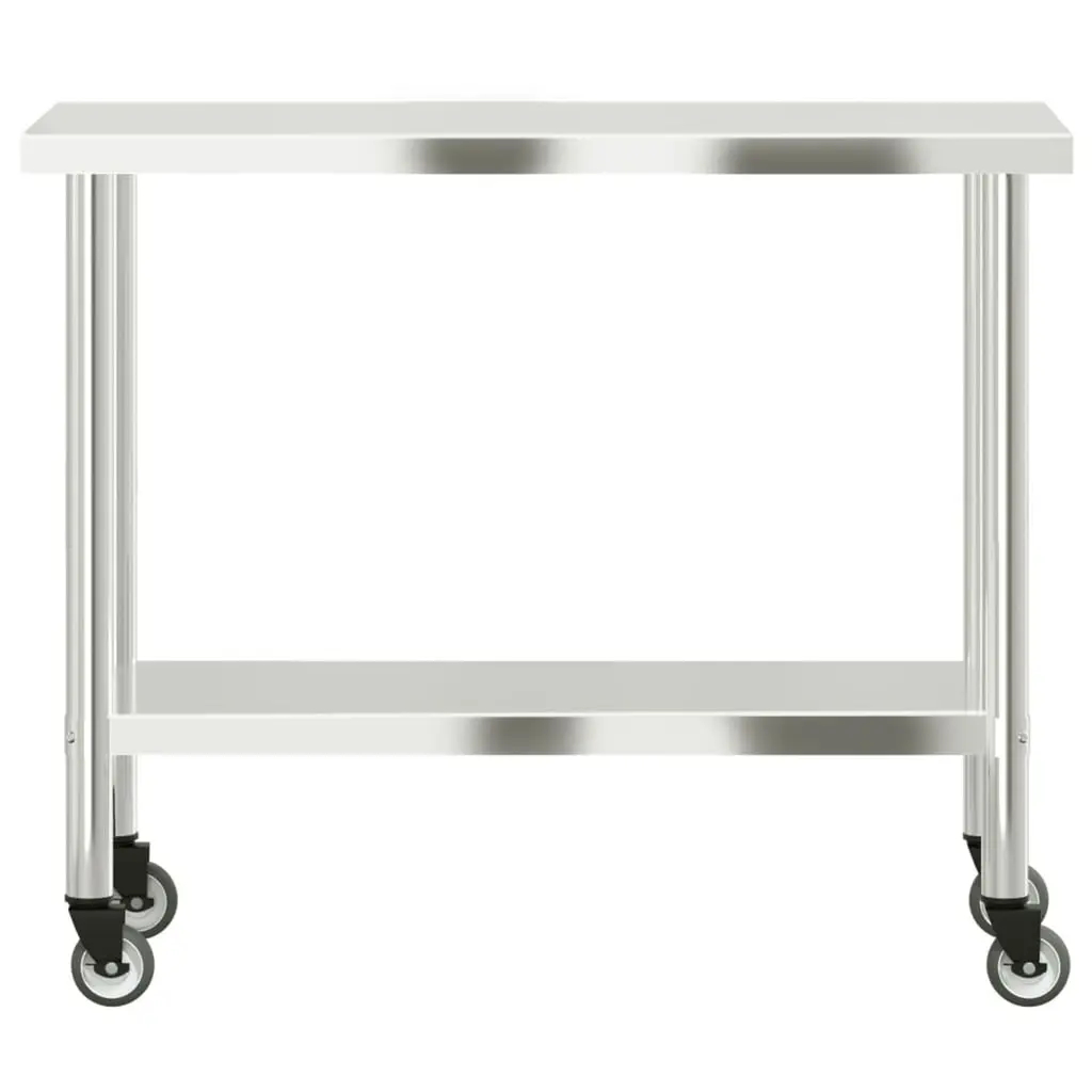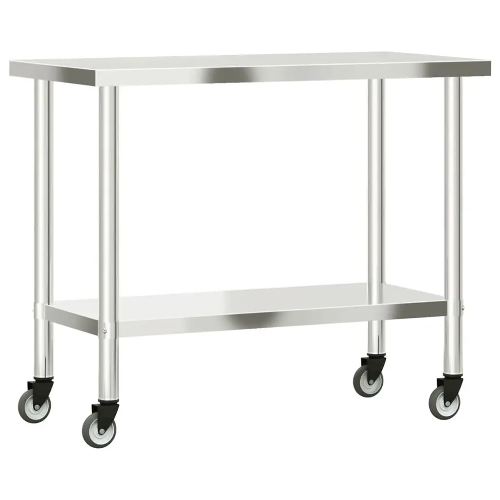 Vidaxl Kitchen Work Table With Wheels 43.3"x21.7"x33.5" Stainless Steel