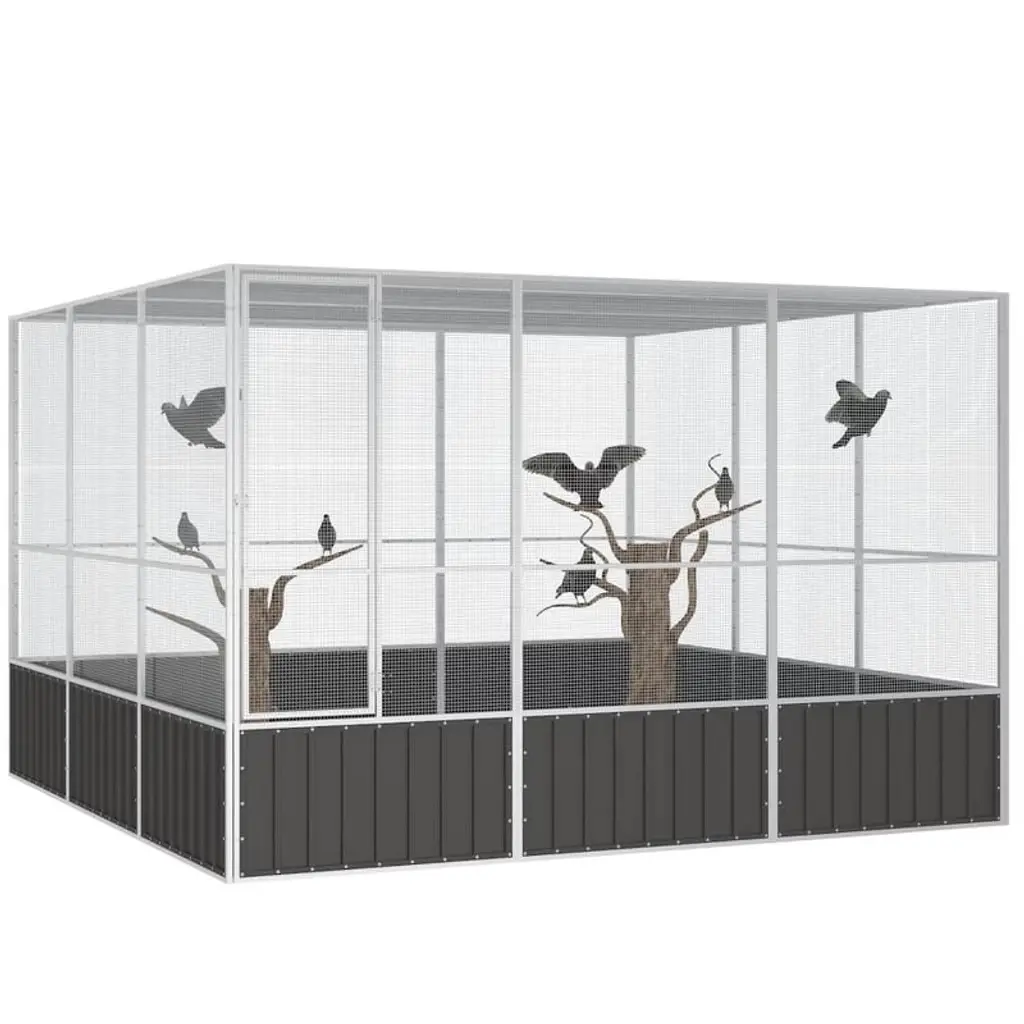 Vidaxl Large Bird Aviary - Outdoor Galvanized Steel Bird Cage - Anthracite - Spacious, Multifunctional, Secure - Suitable For Multiple Bird Species