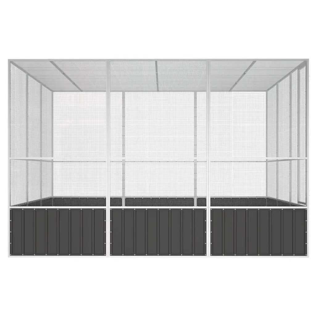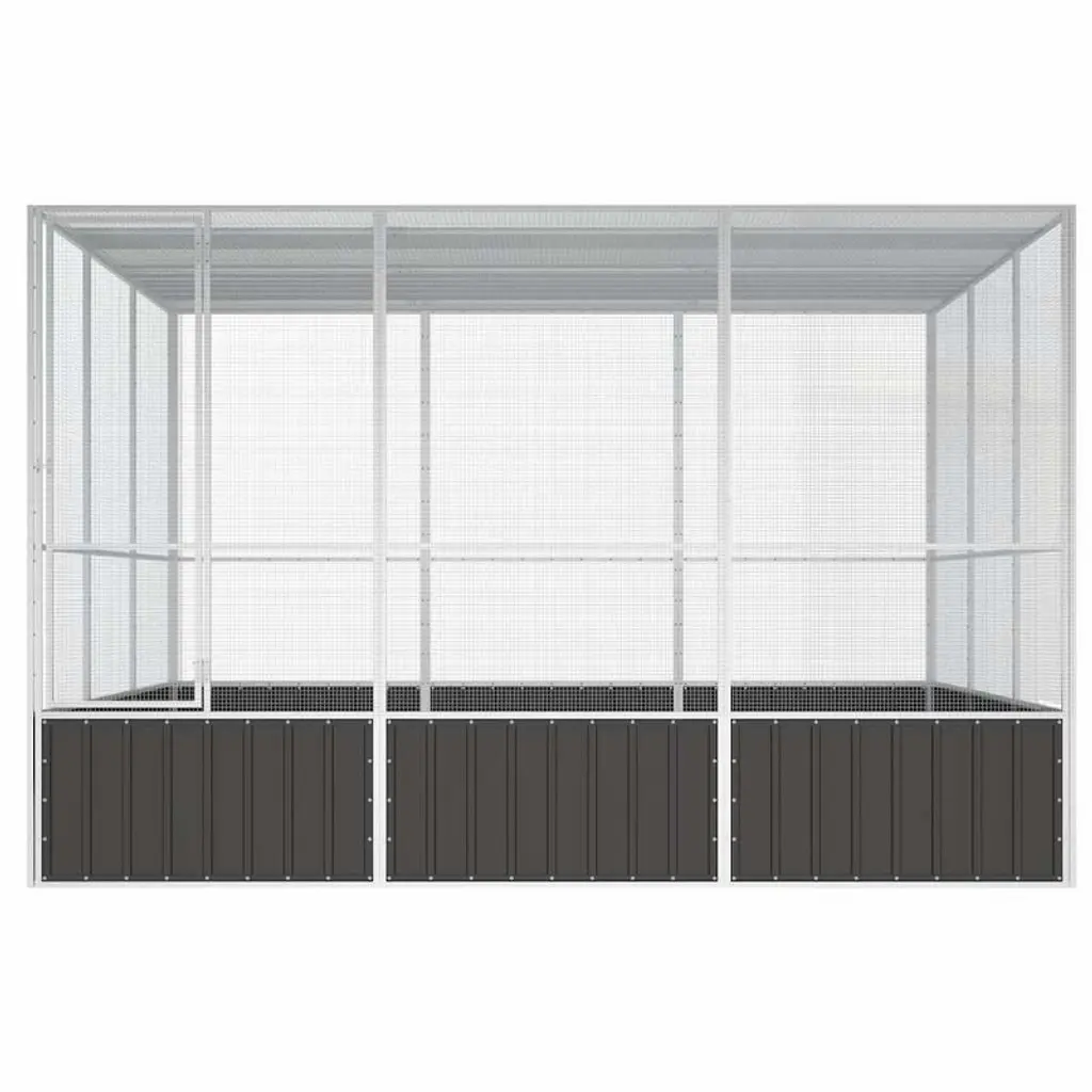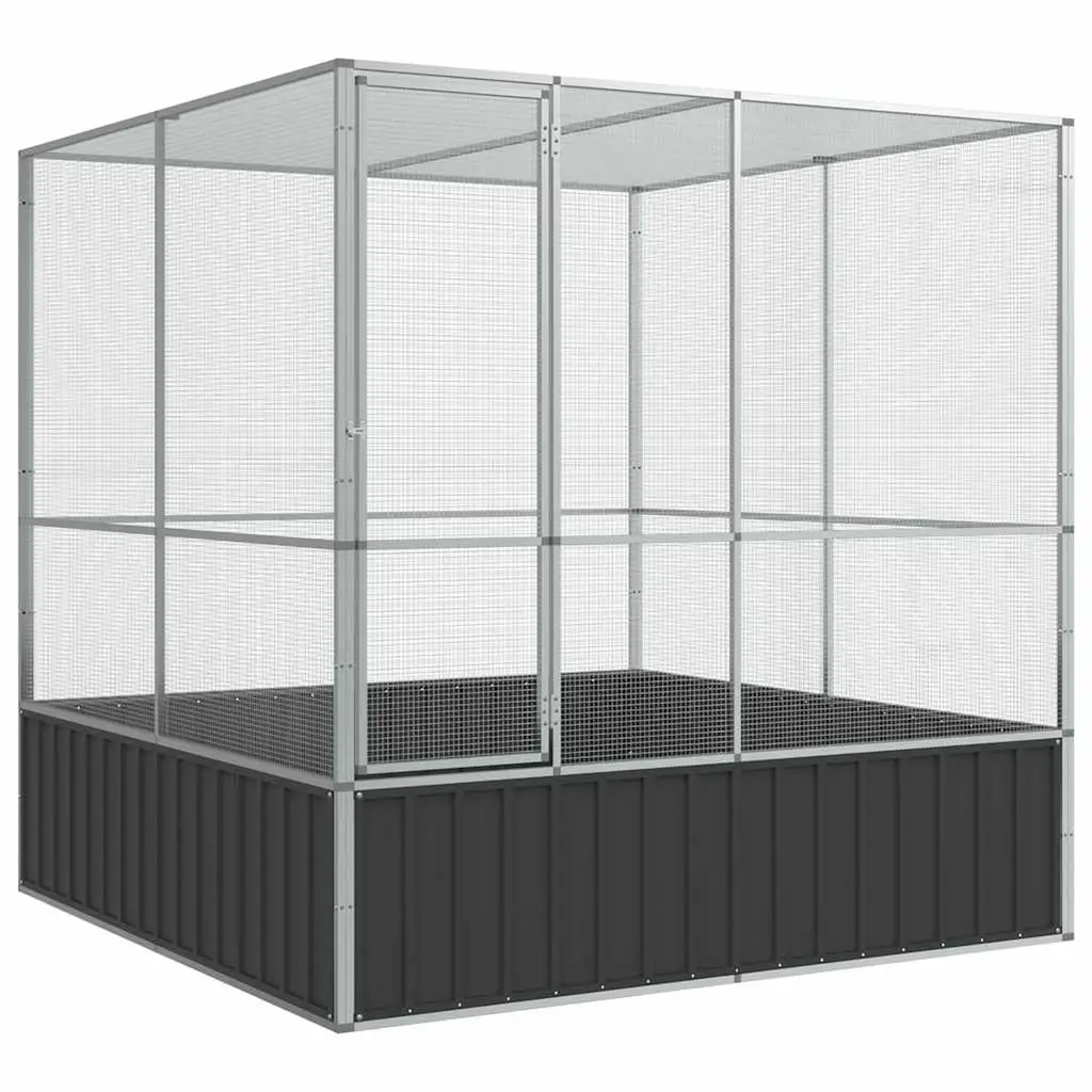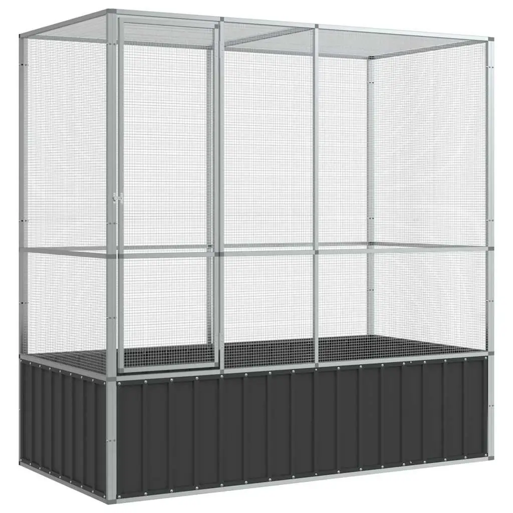 This large outdoor bird cage is made from solid galvanized steel with a trendy anthracite finish. It’s both stylish and secure for your feathery friends. Its industrial vibe not only spices up your outdoor space but also gives loads of room for birds like budgies, parrots, and pigeons to zip around, keeping them happy and healthy.Durable Construction: The tough galvanized steel ensures this bird cage can handle whatever the weather throws at it, making it a reliable home for years to come. Its rust and corrosion resistance means it’s perfect for both outdoor and covered use.Spacious Design: With plenty of room at 119.1 in x 127.8 in, this aviary lets birds be themselves, interact, and exercise, which is key for their health.Weatherproof: Made for the outdoors, this bird cage keeps your birds safe from UV rays and harsh weather.Easy Maintenance: A quick wipe down with a damp cloth keeps it clean, so your birds have a tidy space.Ventilated Design: The setup allows great airflow, keeping the living conditions fresh and suitable.