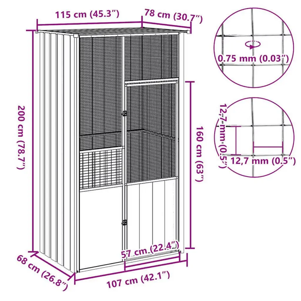 This large bird cage is just what pet owners need for a tough yet stylish home for their feathered pals. With an industrial grey finish and a strong galvanized steel frame measuring 45.3 in long, 30.7 in wide, and 78.7 in high, this cage gives them loads of space while looking good in your garden or backyard.Heavy-Duty Construction: The cage has a strong galvanized steel structure that can hold larger birds or several smaller ones without sacrificing safety. Its design puts safety and durability first, giving pet owners peace of mind.Escape-Proof Latches: Each latch is crafted to stop your birds from pulling a fast one and escaping, letting you enjoy time with your pets while knowing they're safe. This feature is key for those wanting to house adventurous birds safely.Durable Material: The cage’s galvanized steel makes it resistant to rust and wear, promising a long lifespan. This durability means you won't have to replace it often—great for bird lovers.Versatile Usage: This cage is made for a variety of small animals, like rabbits, chickens, or ducks. It’s a fantastic option for those who enjoy having different pets.Easy Maintenance: Cleaning is a breeze with a damp cloth thanks to its smooth metal finish, and the design makes assembly and upkeep effortless. This is especially handy for busy pet owners who want to keep things tidy.